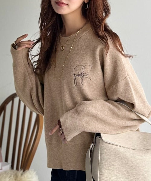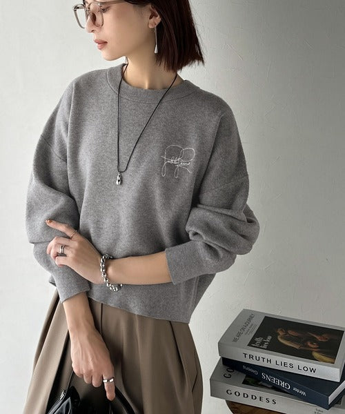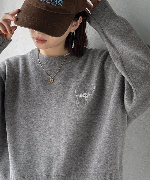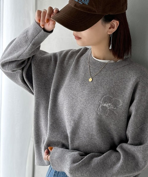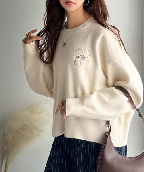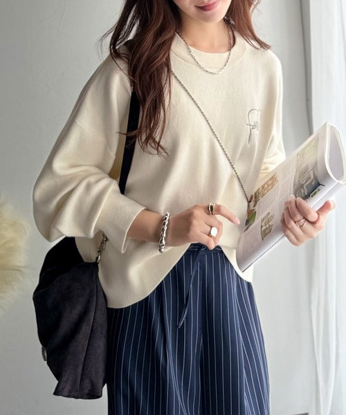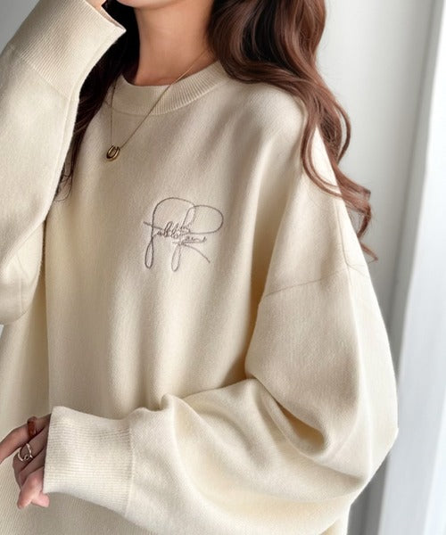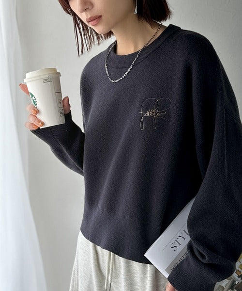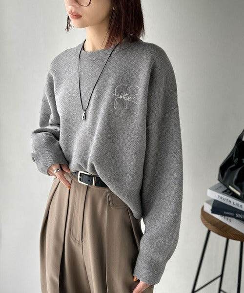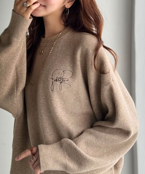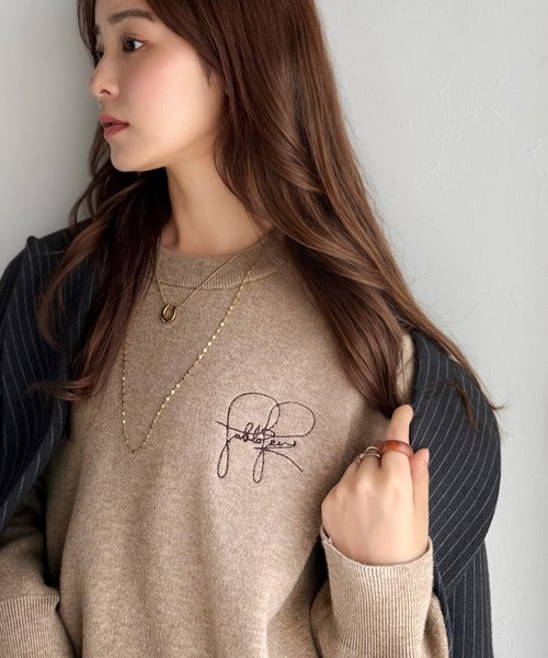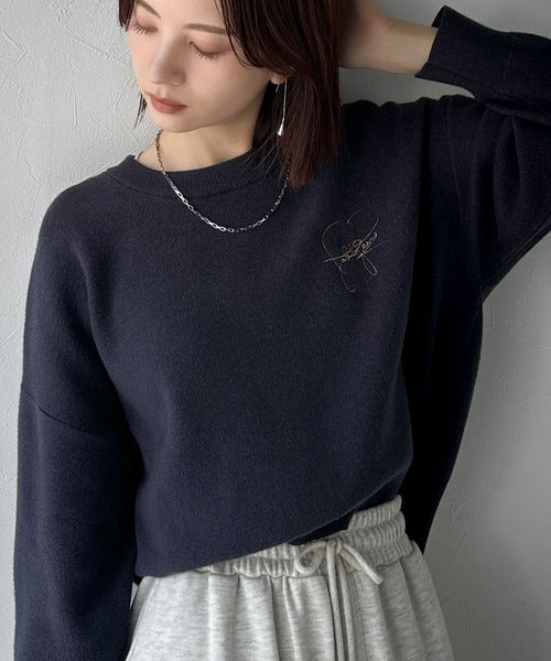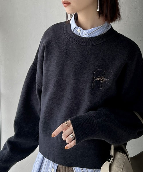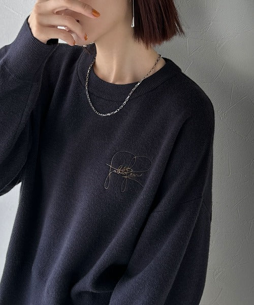 スウェットライクで”魅せる”大人のリラクシーな1枚。胸元サインロゴ刺繍入りニット ce1260482