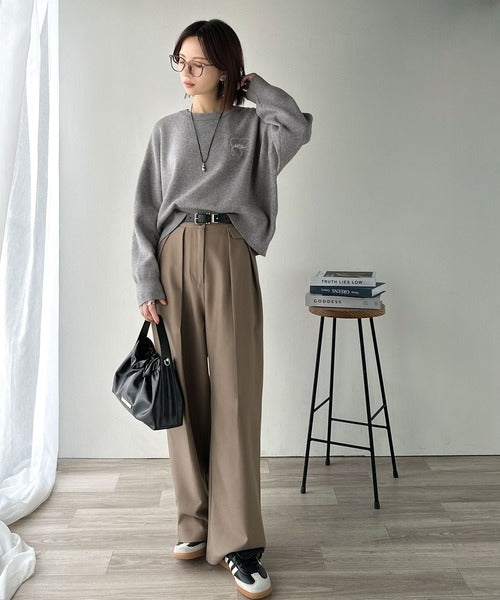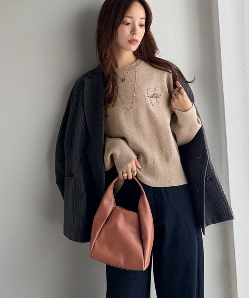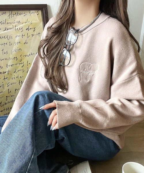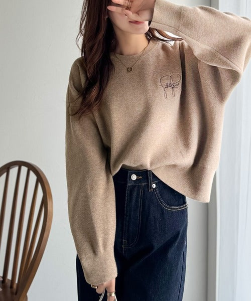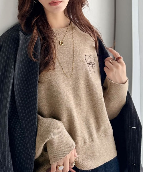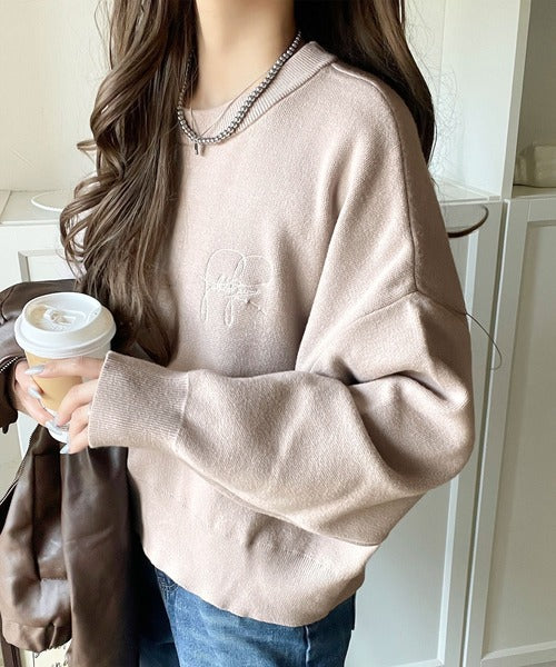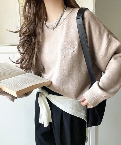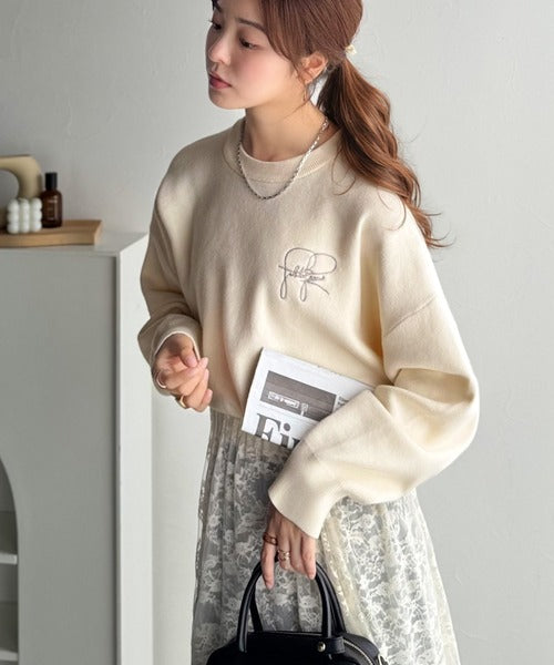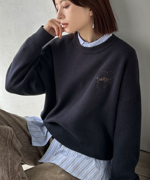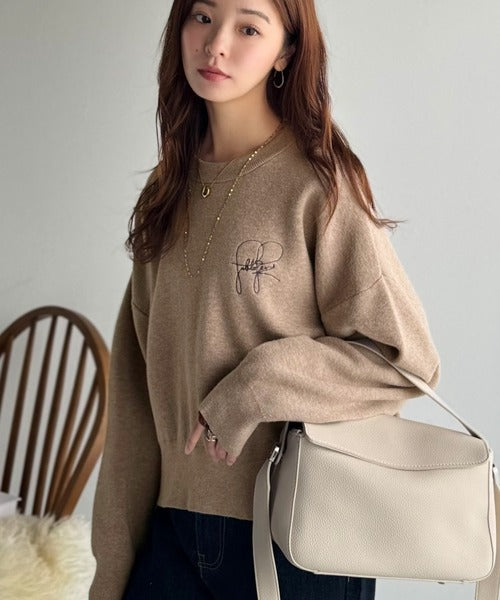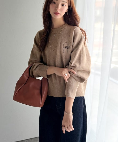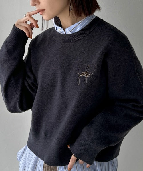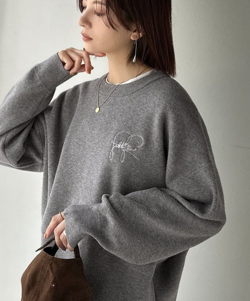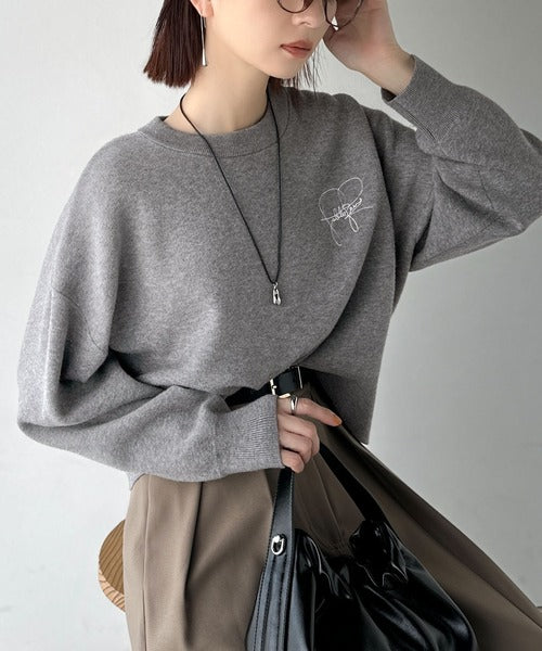 スウェットライクで”魅せる”大人のリラクシーな1枚。胸元サインロゴ刺繍入りニット ce1260482