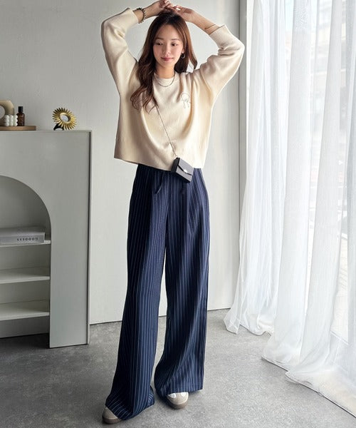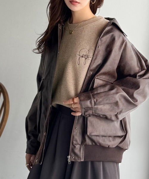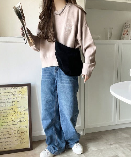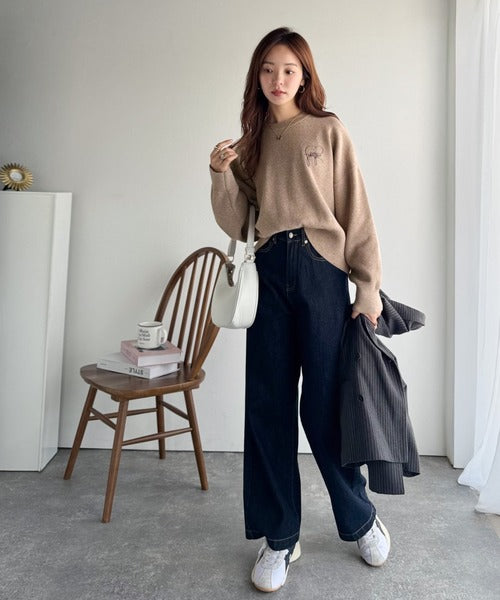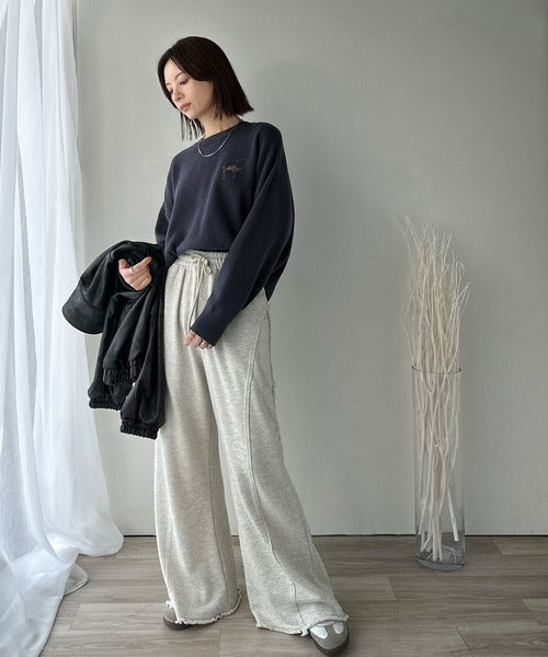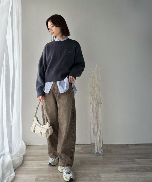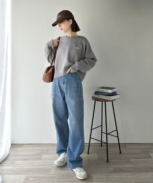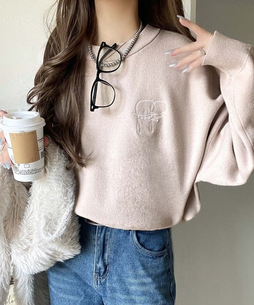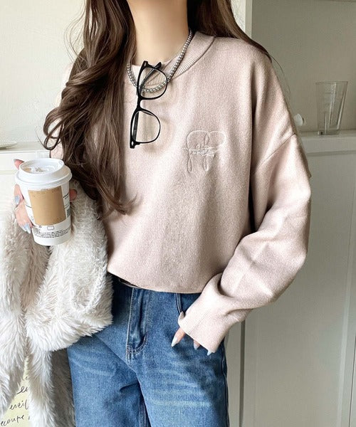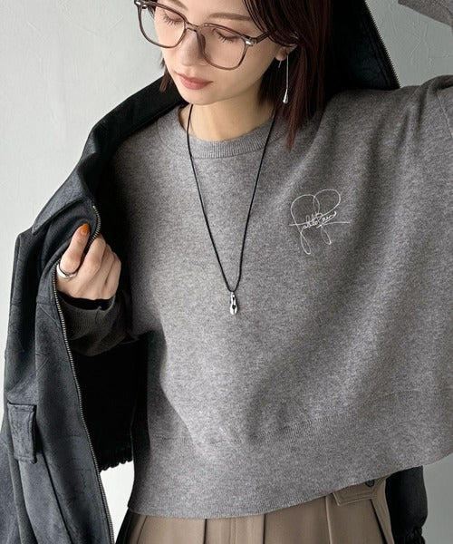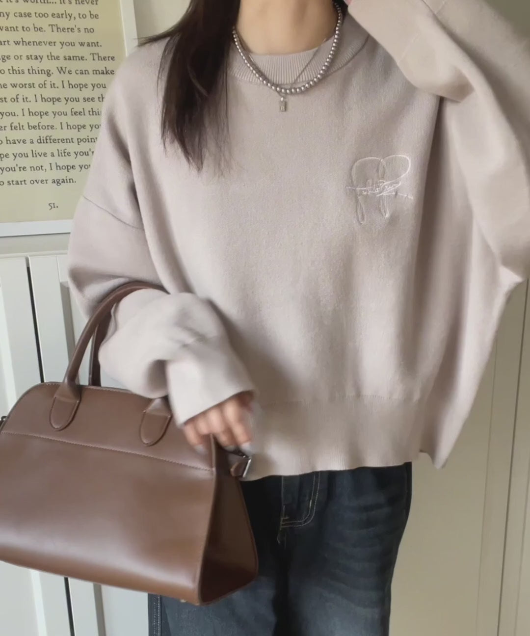 スウェットライクで”魅せる”大人のリラクシーな1枚。胸元サインロゴ刺繍入りニット ce1260482