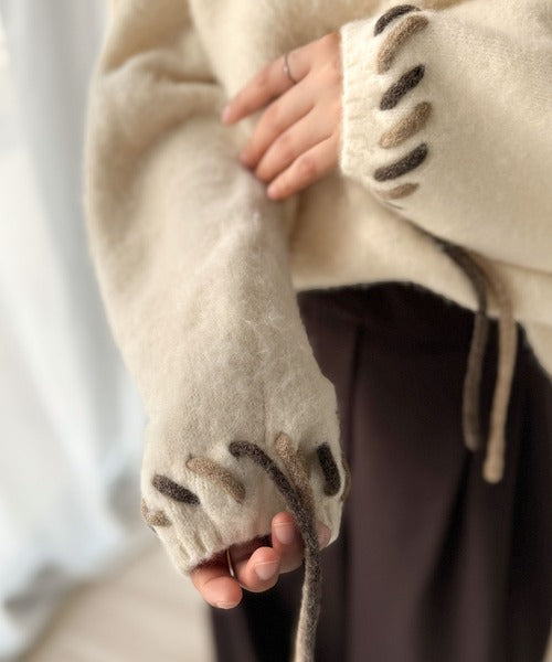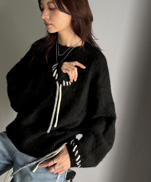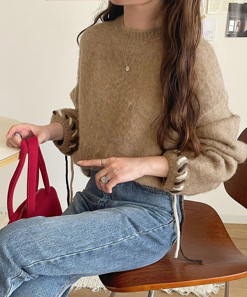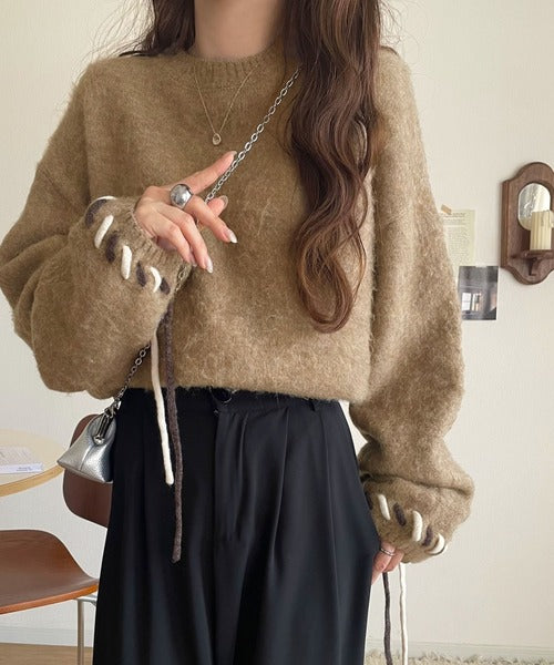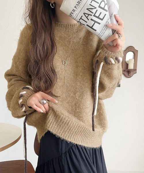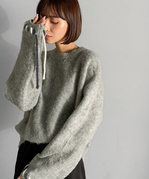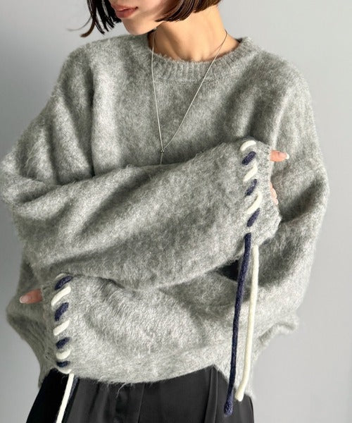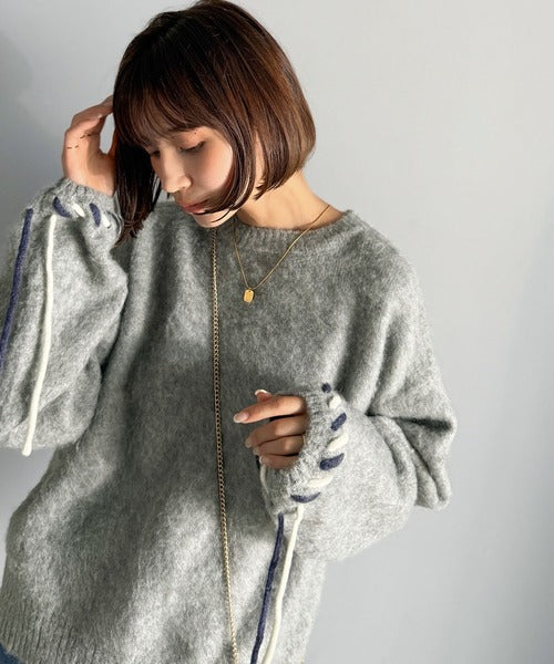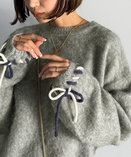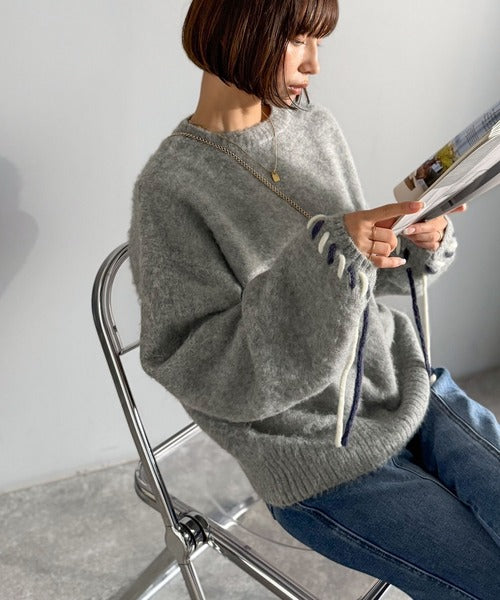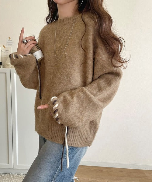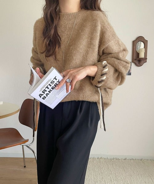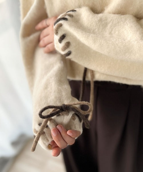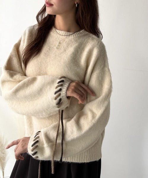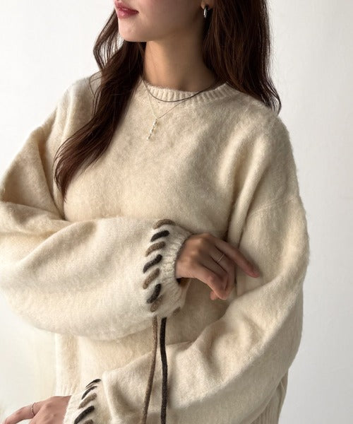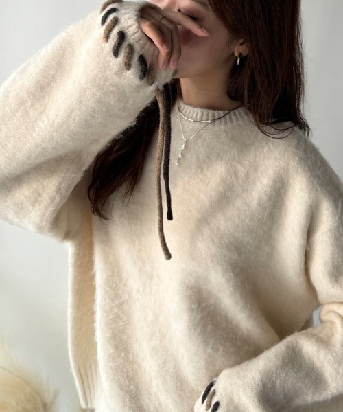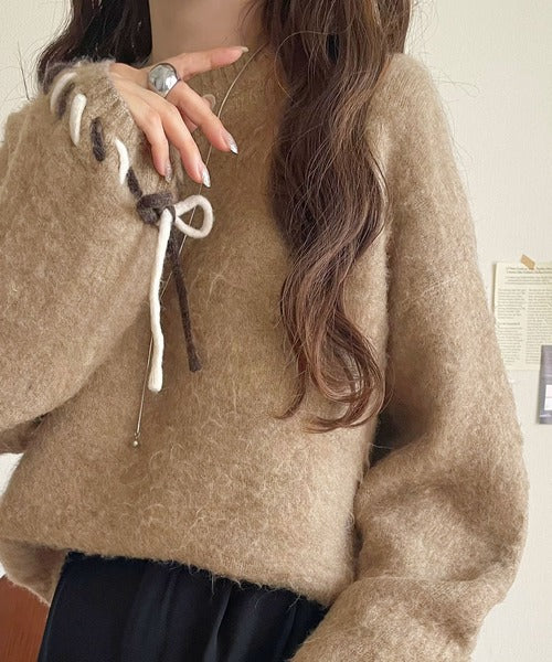 ふんわり温もり◎袖2wayリボン使い配色ニットプルオーバー(長袖) ce1380003