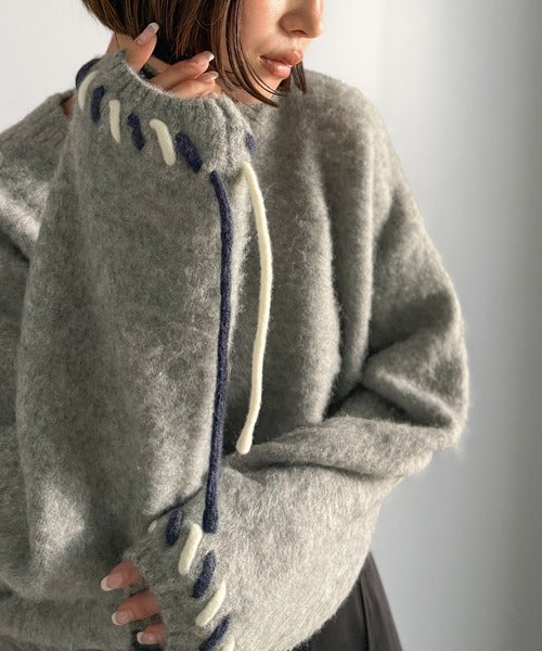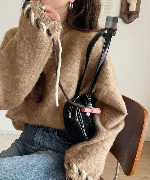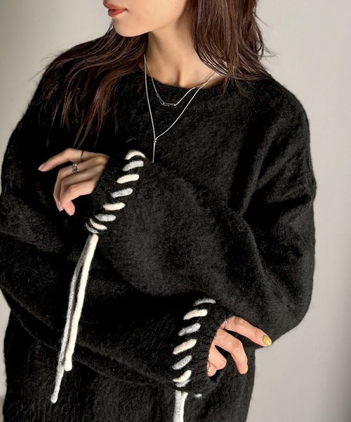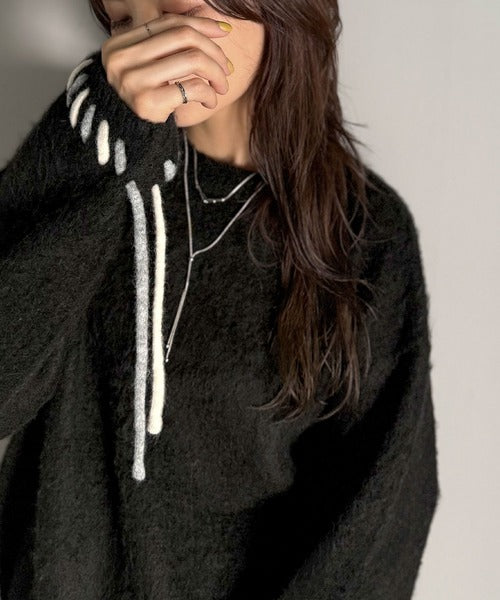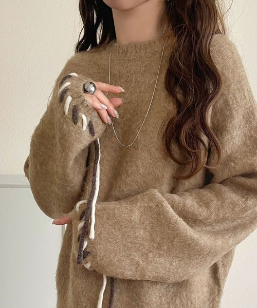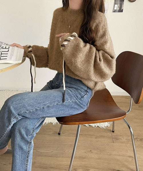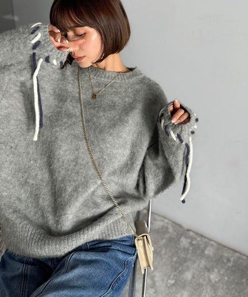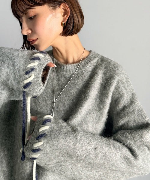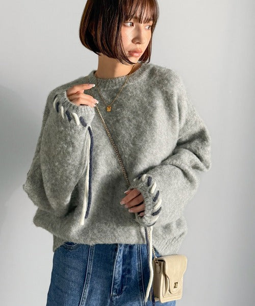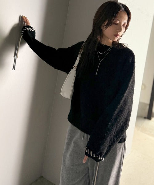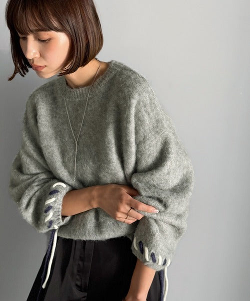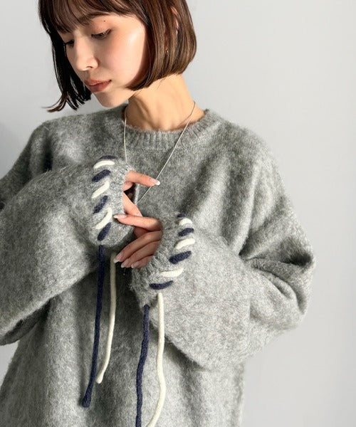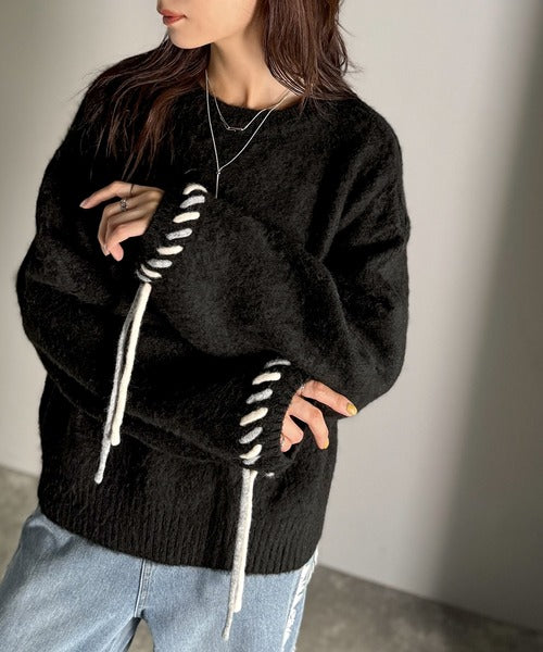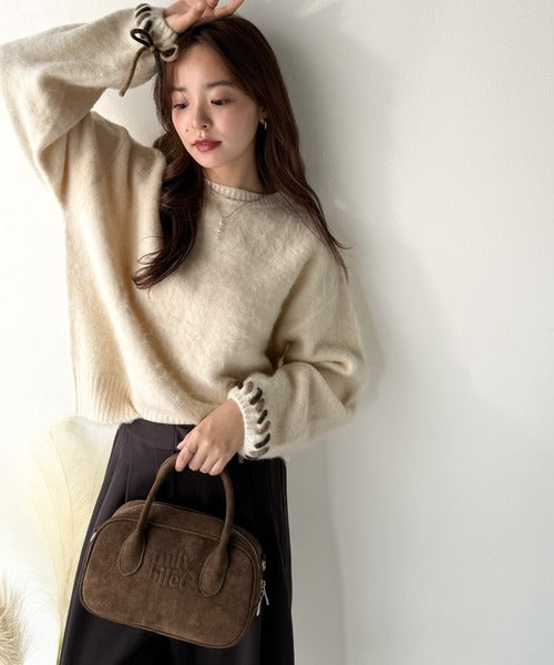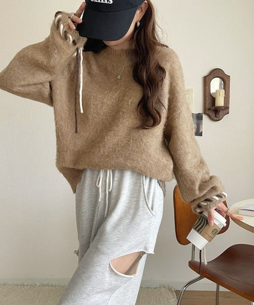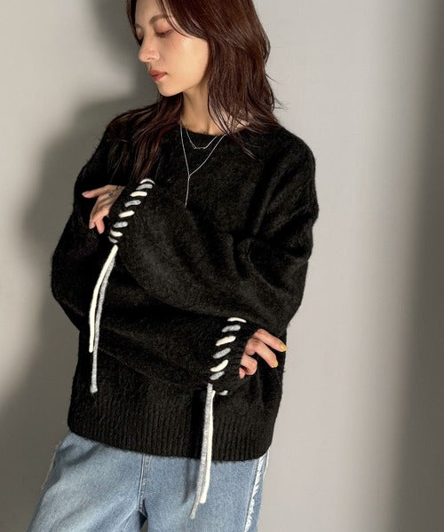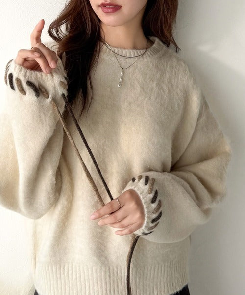 ふんわり温もり◎袖2wayリボン使い配色ニットプルオーバー(長袖) ce1380003