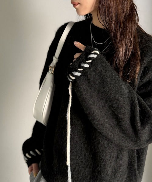 袖の配色リボンデザインがアクセントの2WAYニット