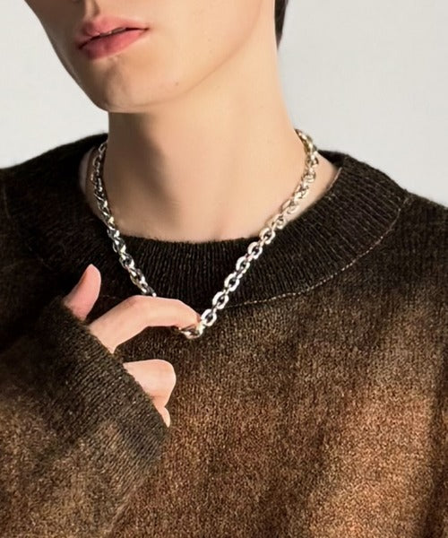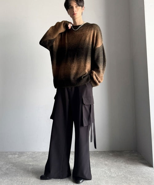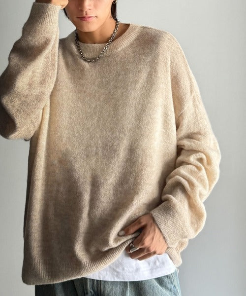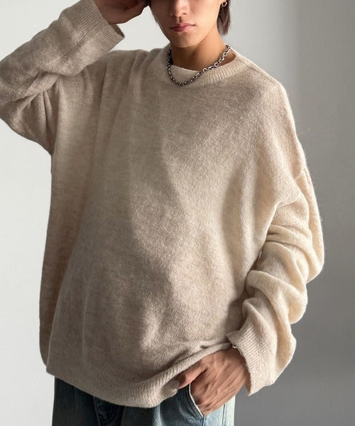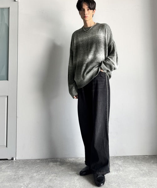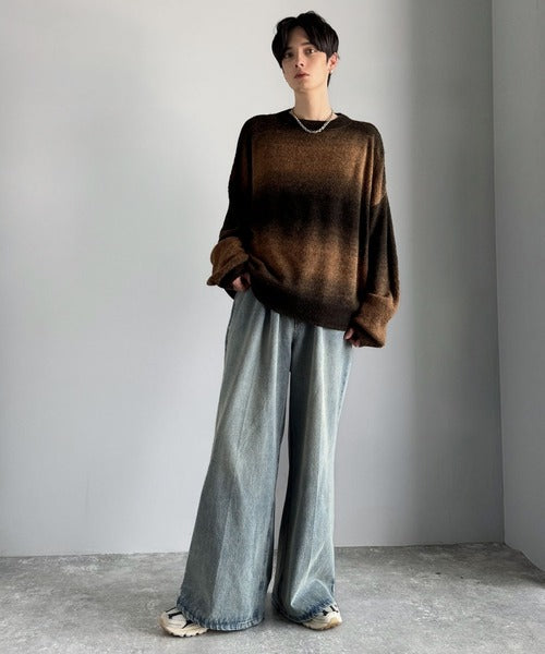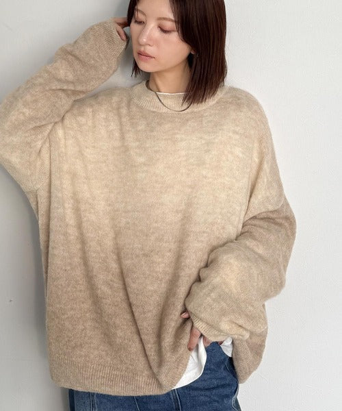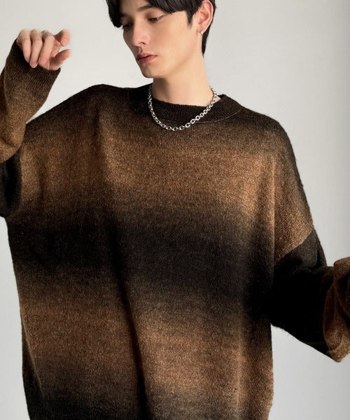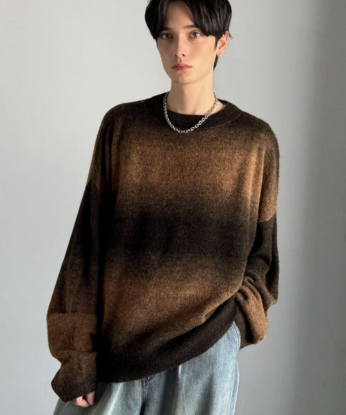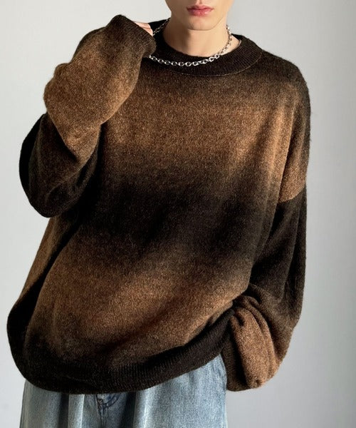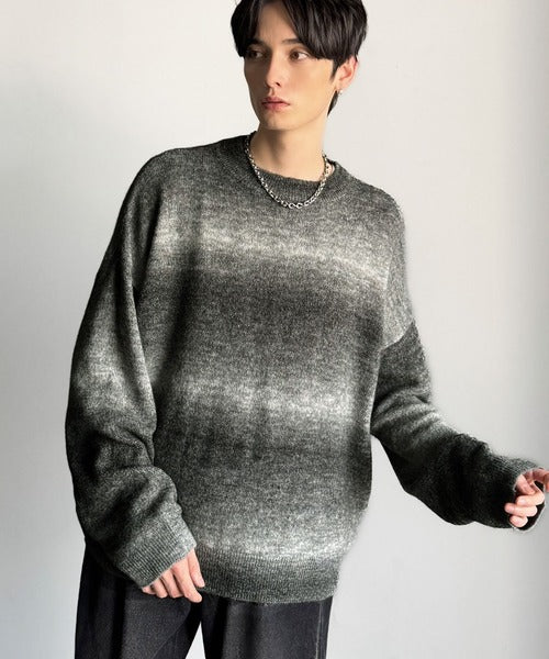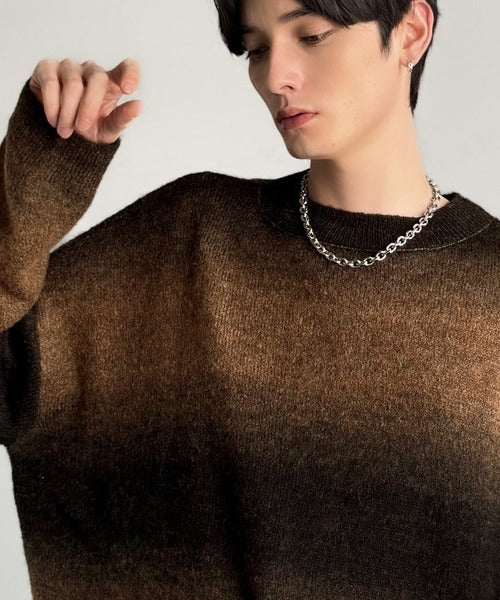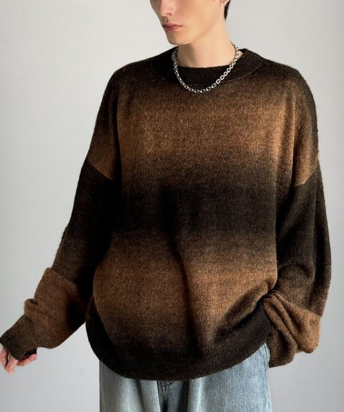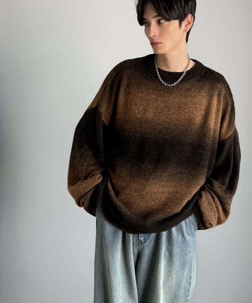 シンプルながらも、繊細な透かし編みとグラデーションカラーが目を引くデザインニット。