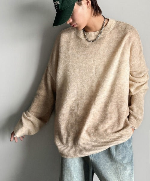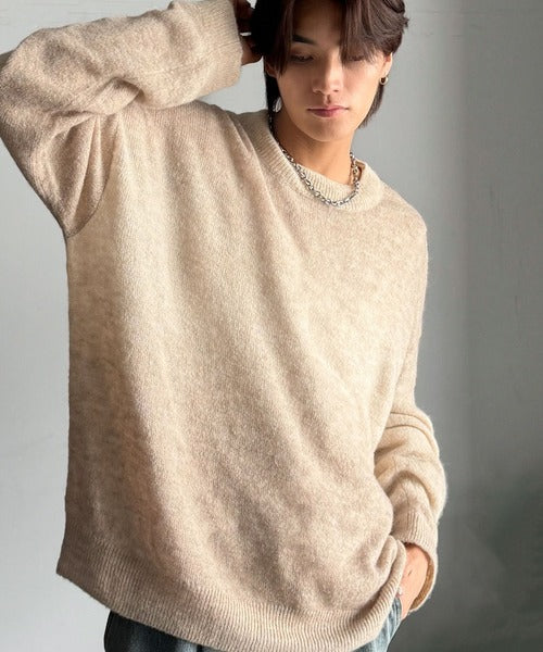 ふんわりとした毛羽立ち感のある糸を使用し、優しい印象と軽やかさを両立。