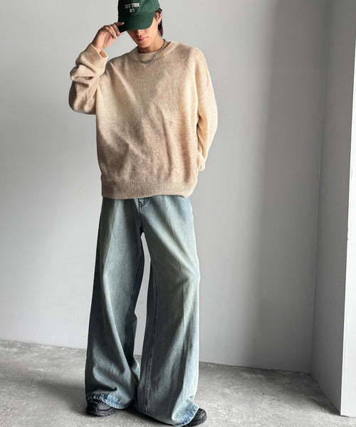 《JaVaジャバコラボ》透け感とニュアンスを重ねる。マルチウェイグラデーション天竺透かし編みメッシュニット(長袖) jm1260006