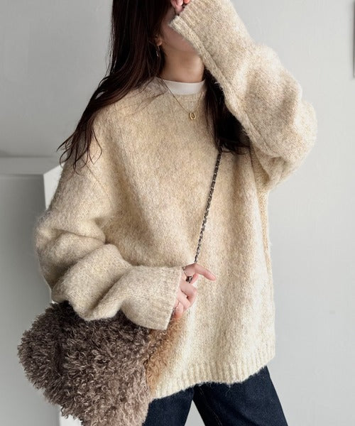 《JaVaジャバコラボ》秋冬の鉄板。日常にふわふわな彩りを。クルーネックミックスカラー糸ニット(長袖) jv1020308