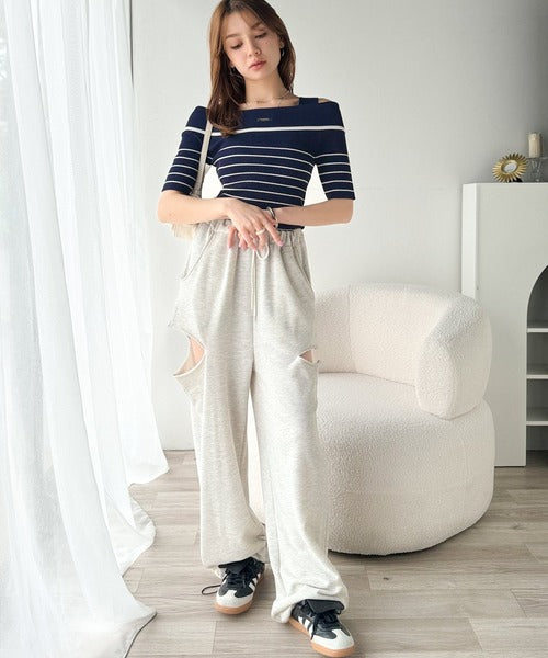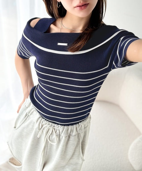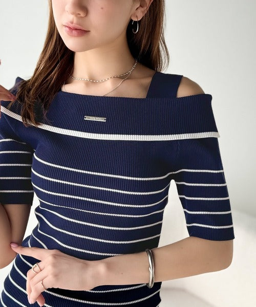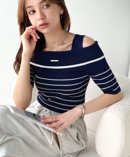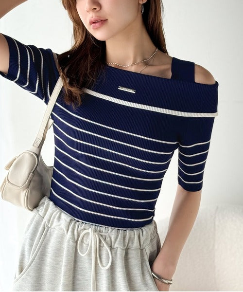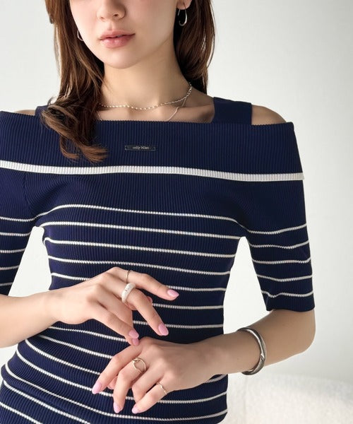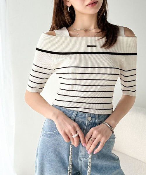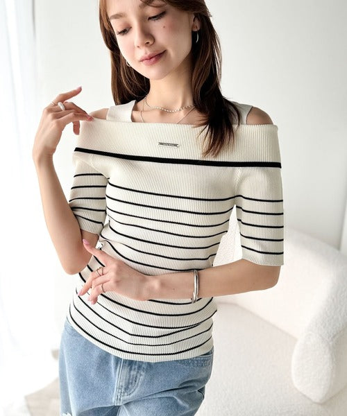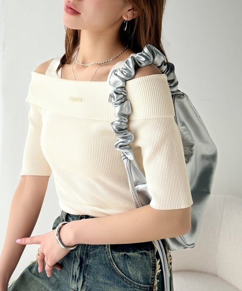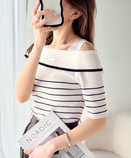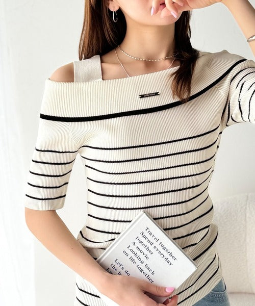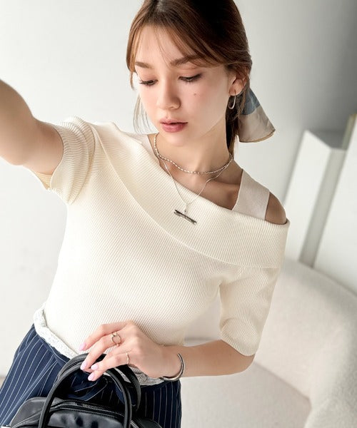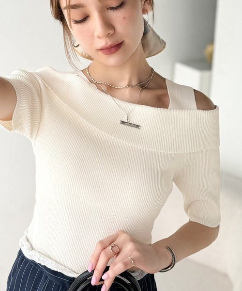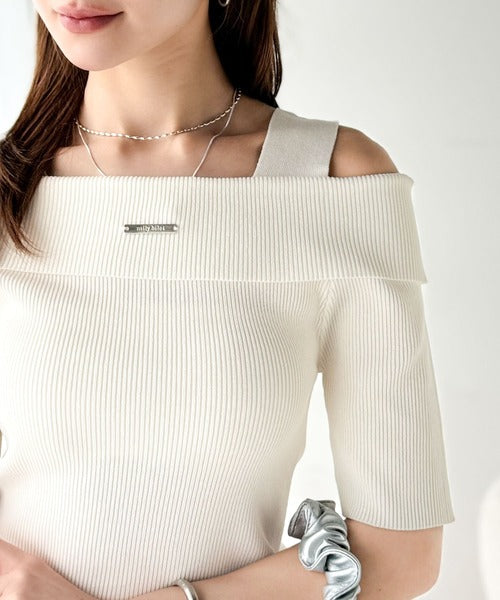 【mily bilet】あざと肌見せに”きゅんっ”。プレート使いオフショルニット(半袖) mi1029129