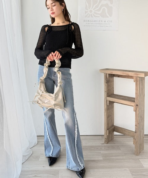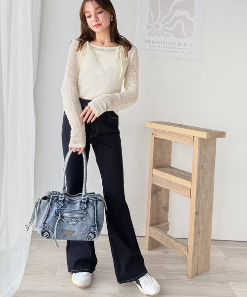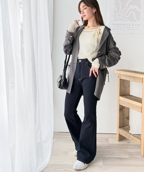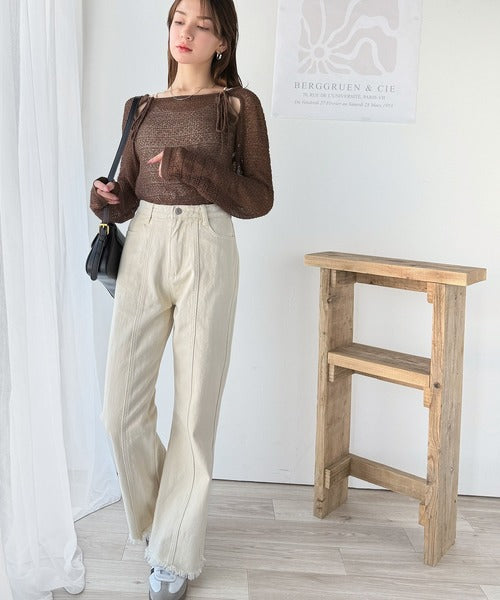 その日の気分に合わせてカーブデニムやフレアパンツを合わせてもOK◎