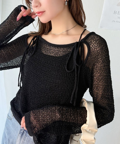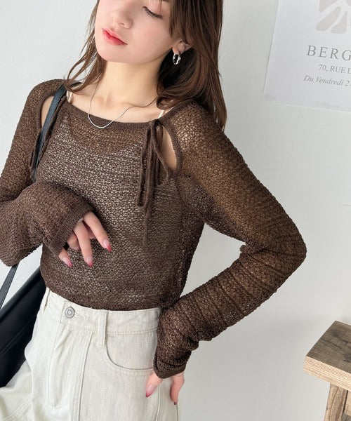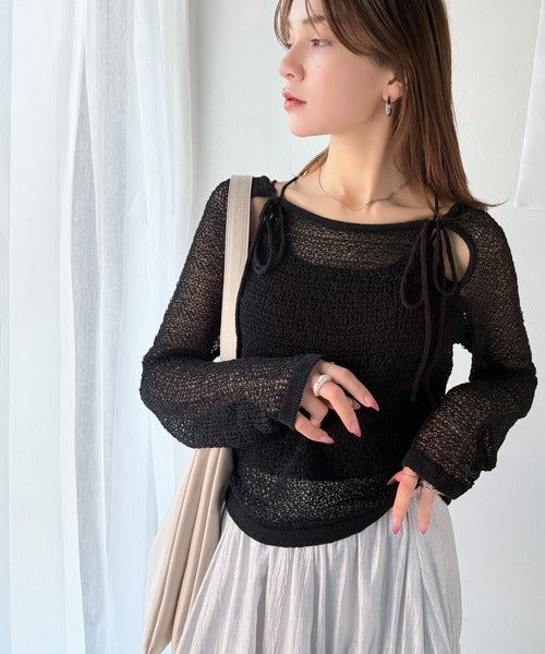 透け感のあるメッシュ編みで、ほどよい肌見せが叶い、