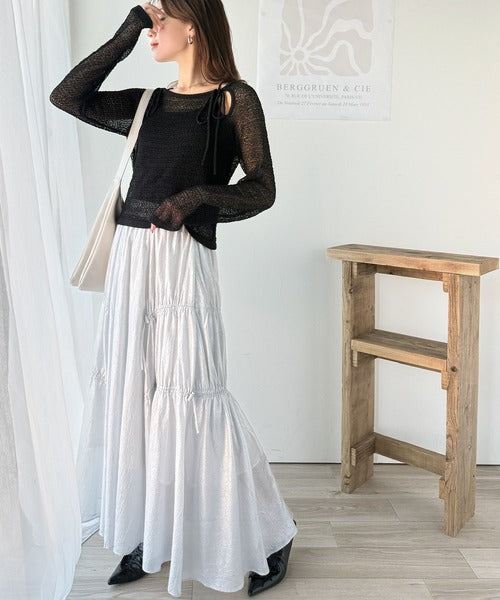 さらに、甘めテイストにはチュールスカートやリボン付き巻スカートがイチオシ!