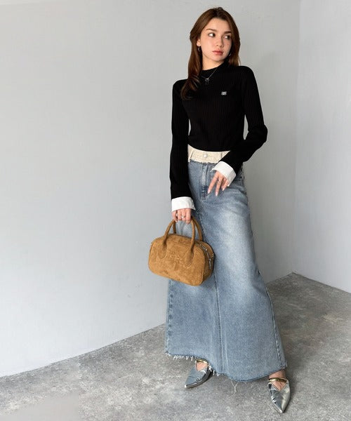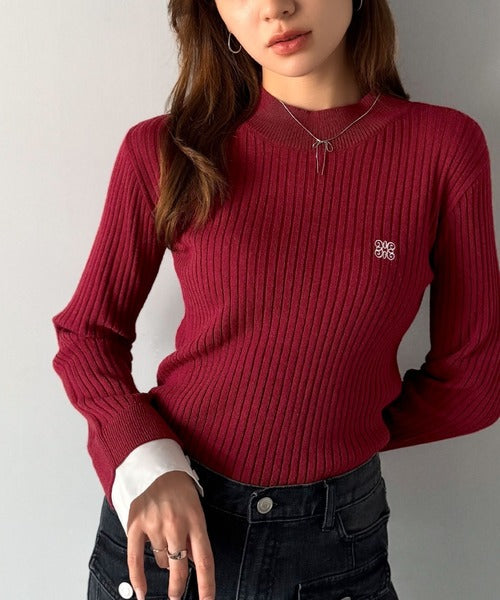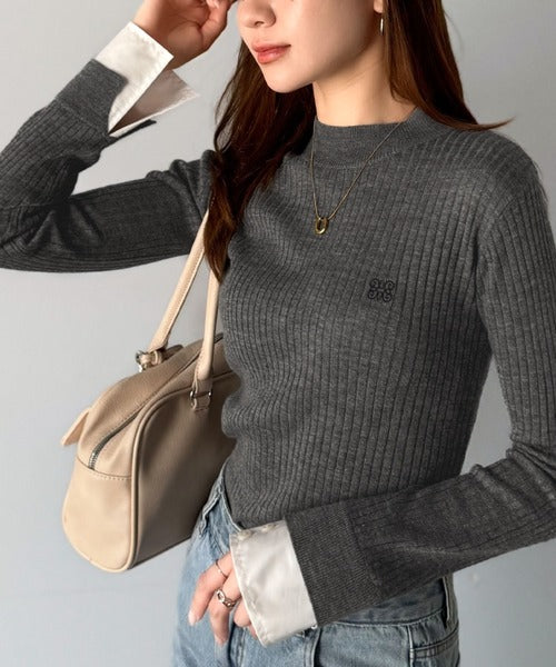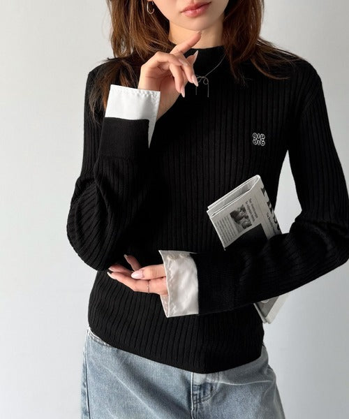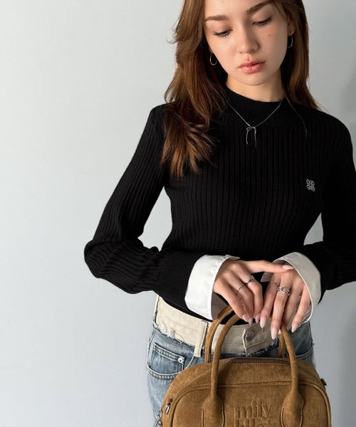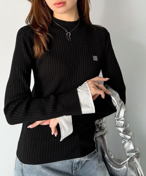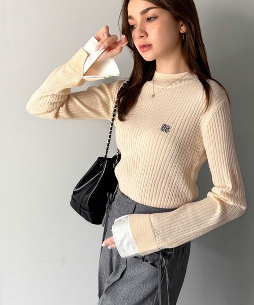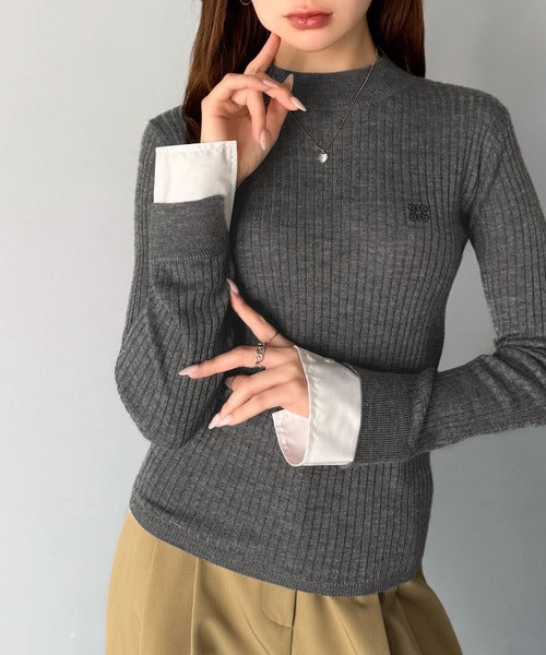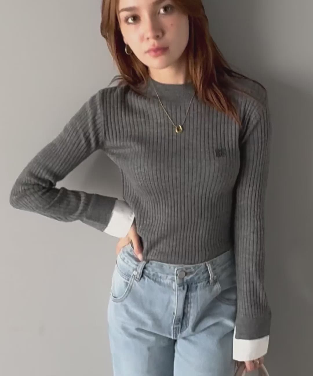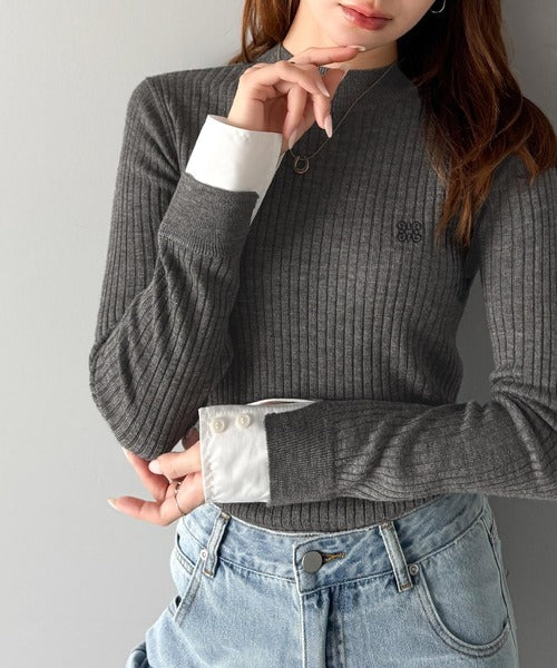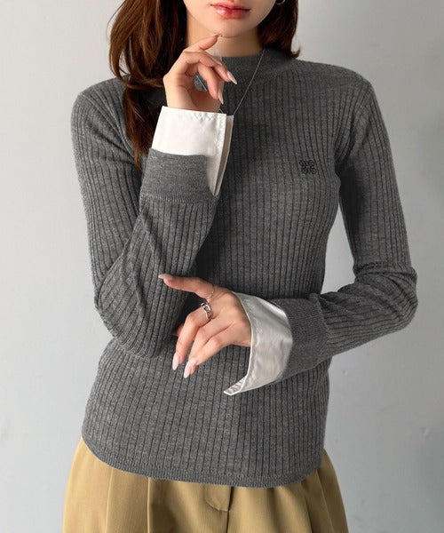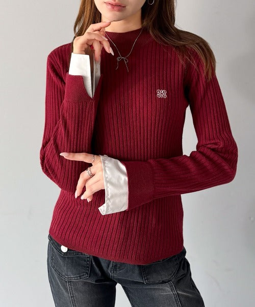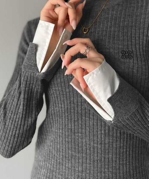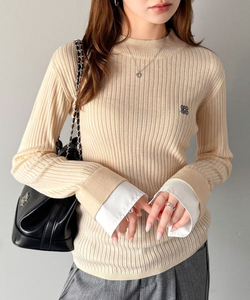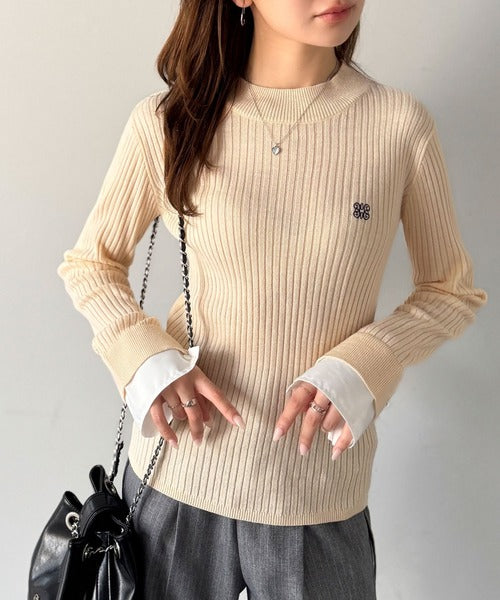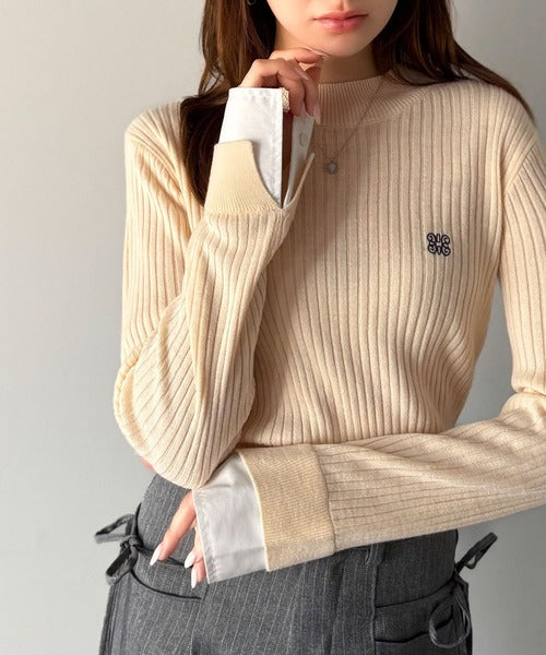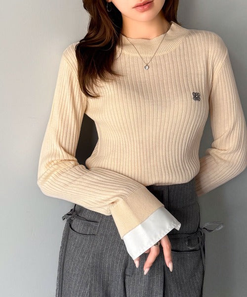 【mily bilet】1枚で完成♪重ね着風デザイン◎カシミアタッチ袖カフスレイヤード刺繍ニット mi1259018