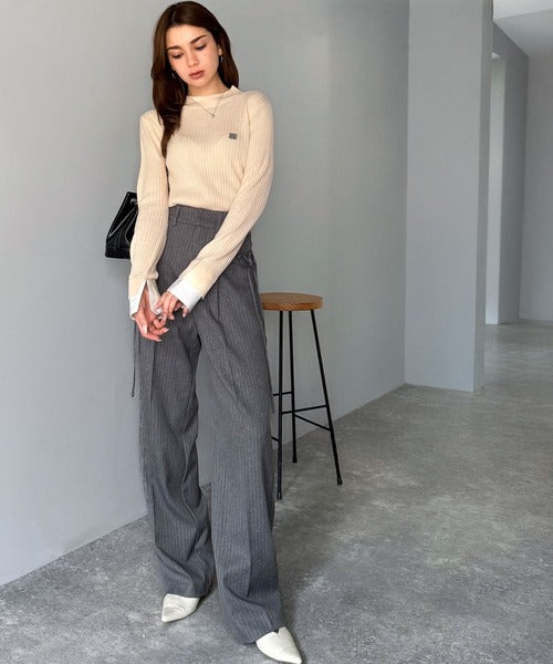 スカートにもパンツにも合わせやすく、シンプルながらも旬のこなれ感を演出してくれる優秀トップスです。
