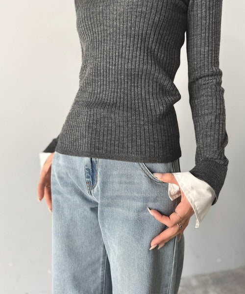 まるでシャツを重ねているようなカフス切り替えで、1枚でも着映えするスタイリングに。