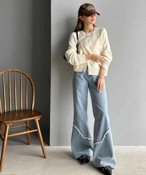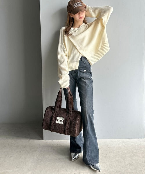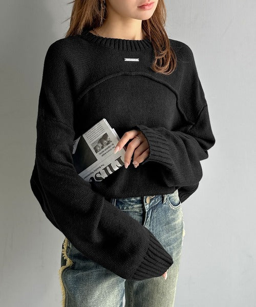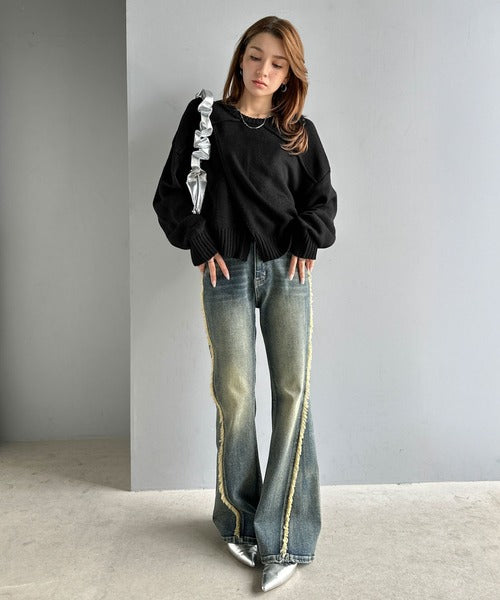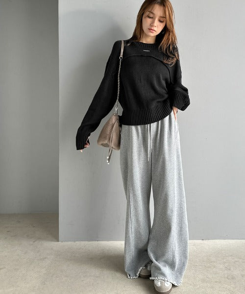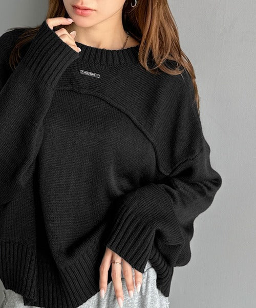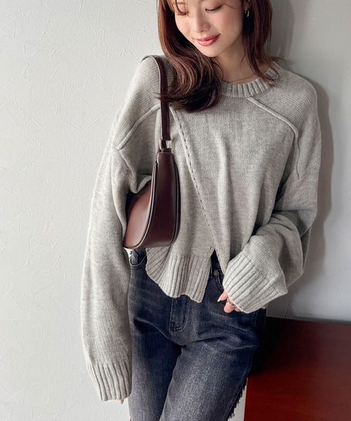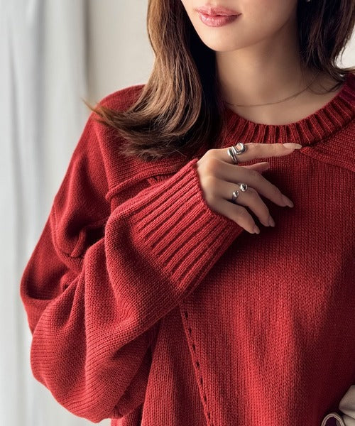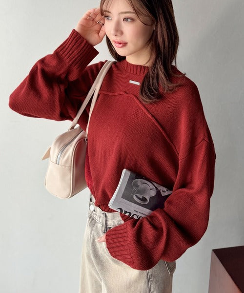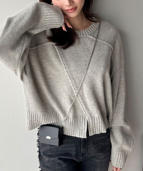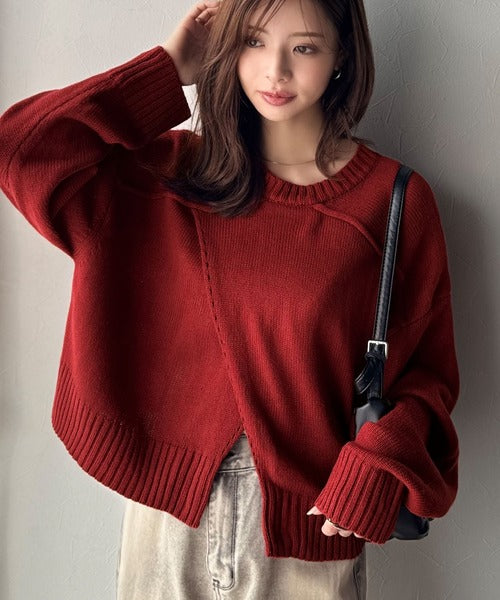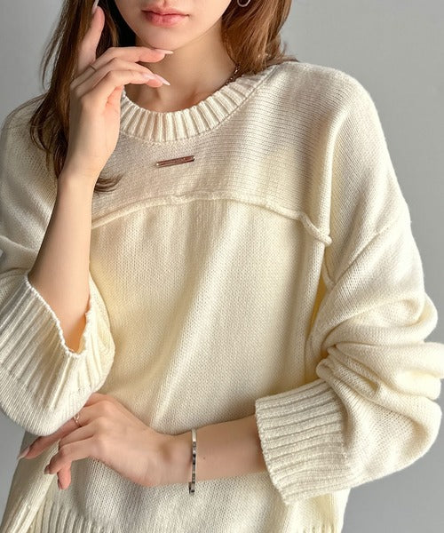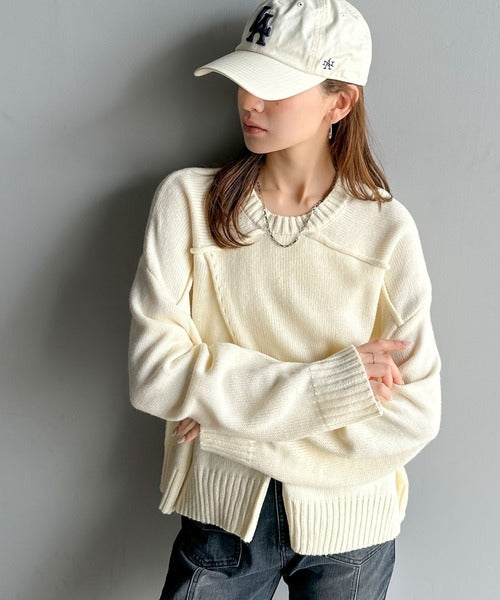 アシンメトリーなフロントデザインが目を引くデザインニットプルオーバー。