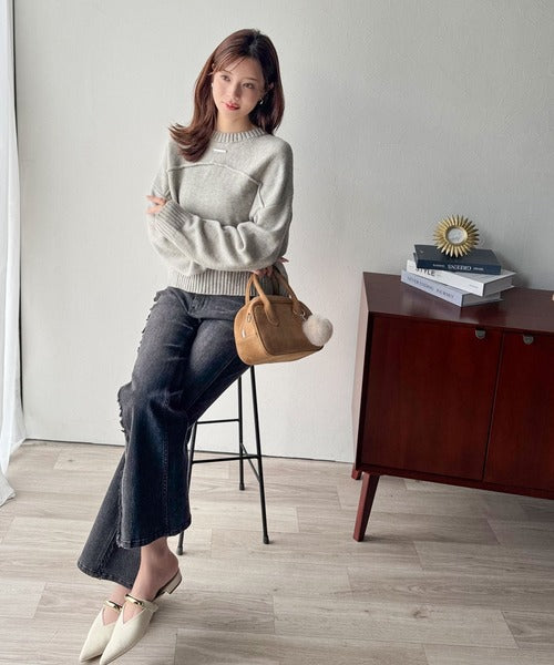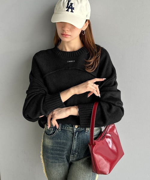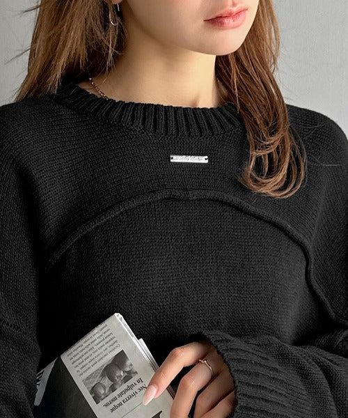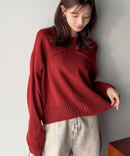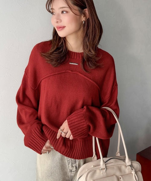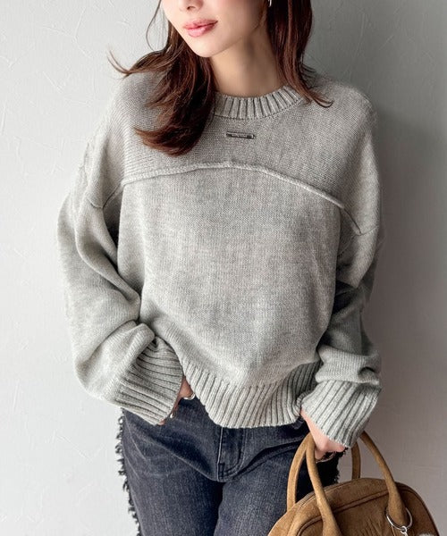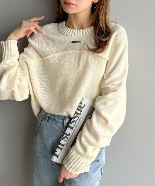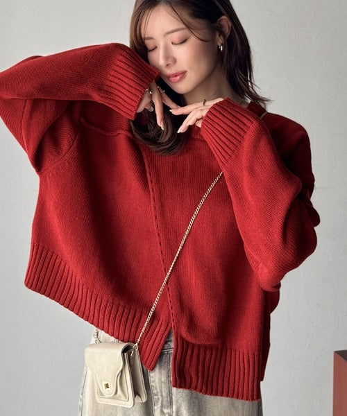 前後2WAYで楽しめるフロント切り替えデザインのニットプルオーバー。