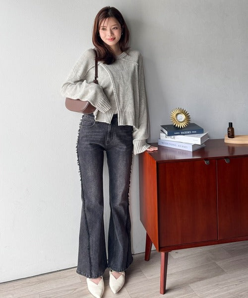 デニムやフレアパンツなどに合わせたシンプルカジュアルスタイルから