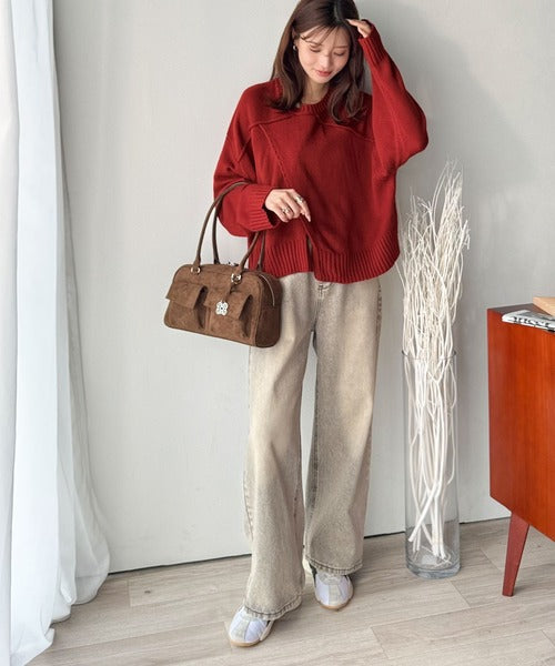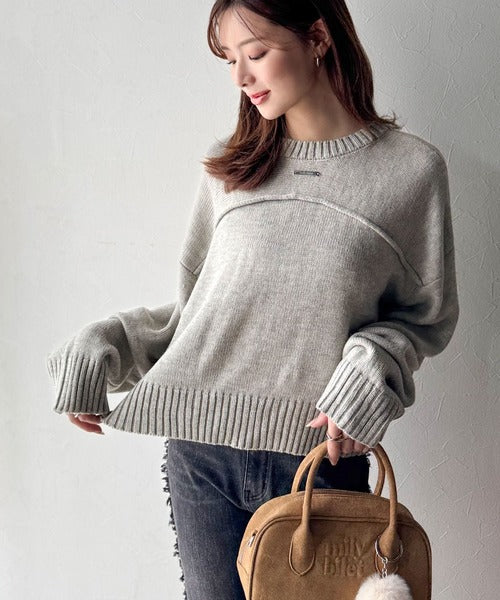 【mily bilet】ゆるっとシルエットが魅せる、大人の余裕。前後2WAYフロント切り替えニットプルオーバー(長袖) mi1329046