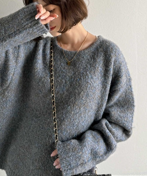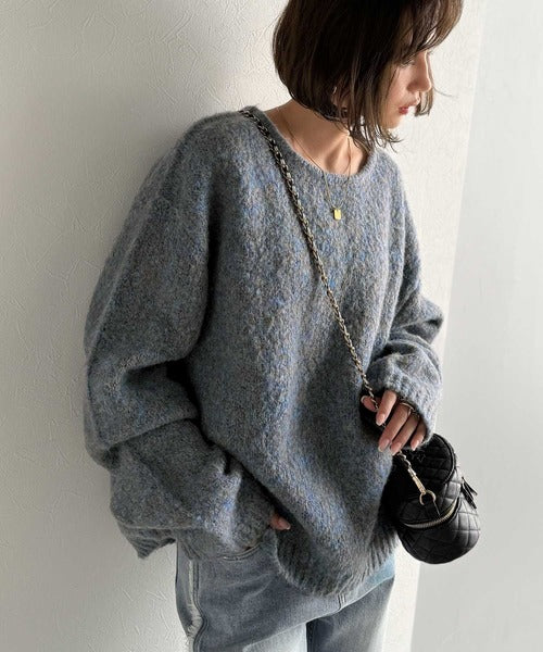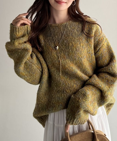 【Classical Origin】「深みのある大人に。」クルーネックミックスカラー糸ニット(長袖)/Crew neck mixed color knit ao1020308