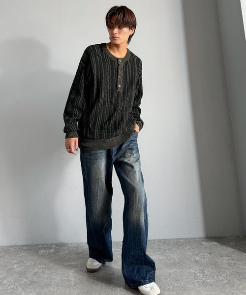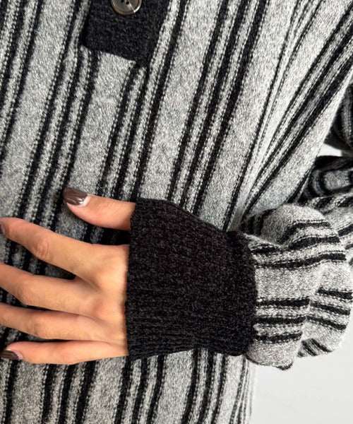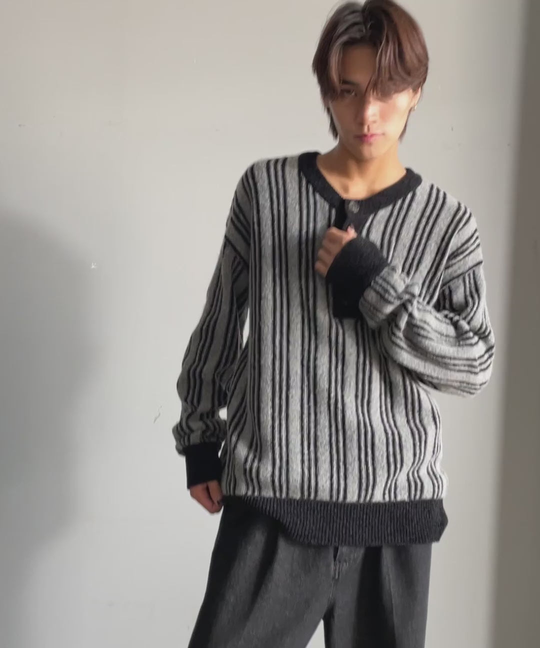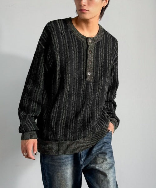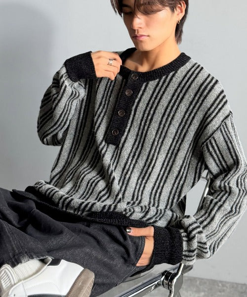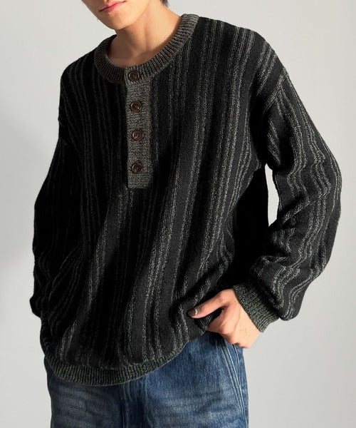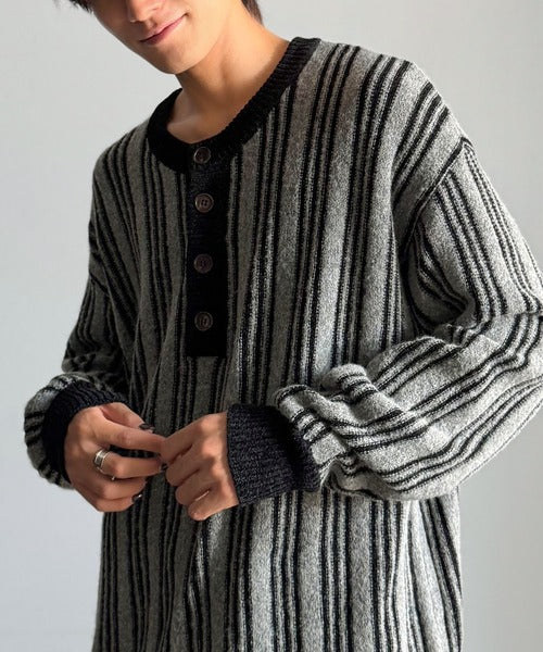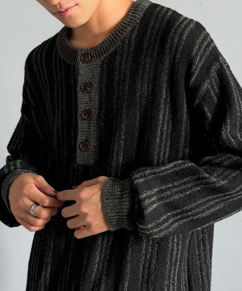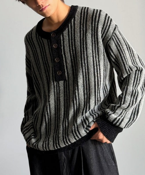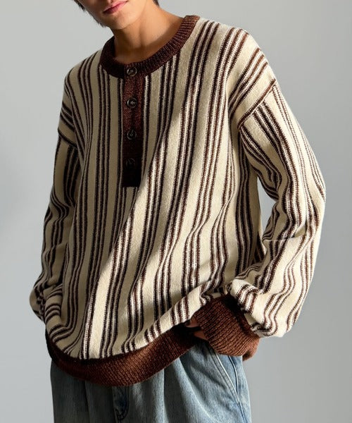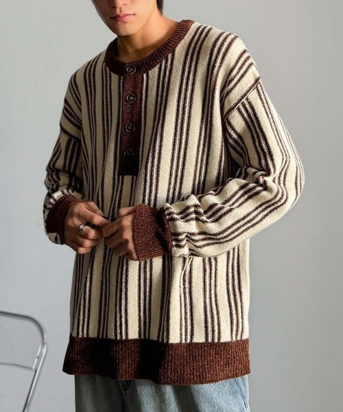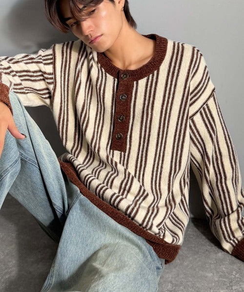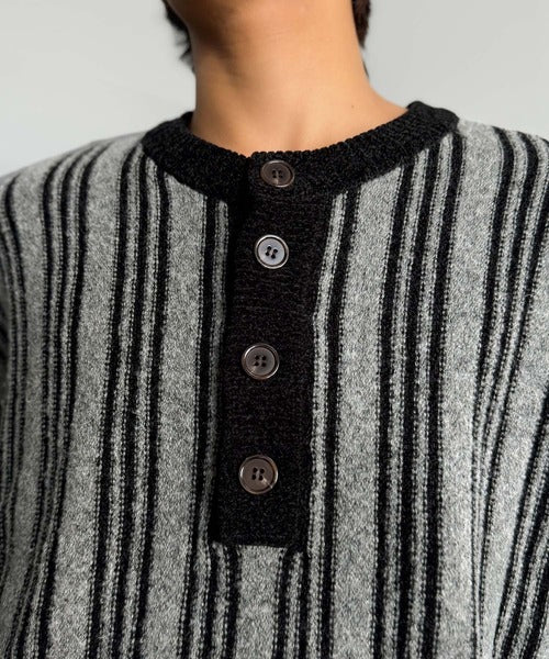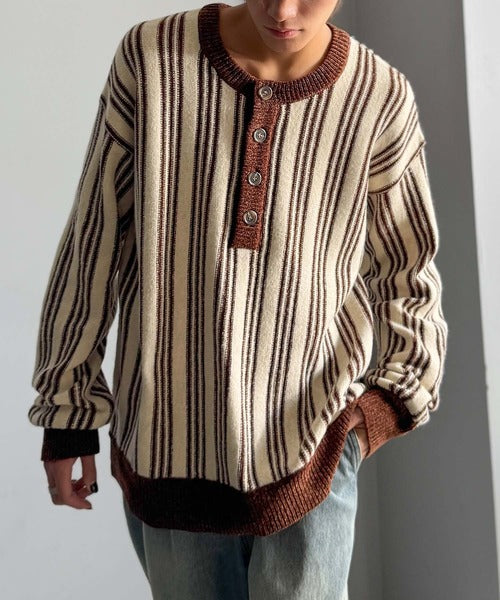 【Classical origin】ヘンリーストライプニット/Henley Striped Knit ao1020315