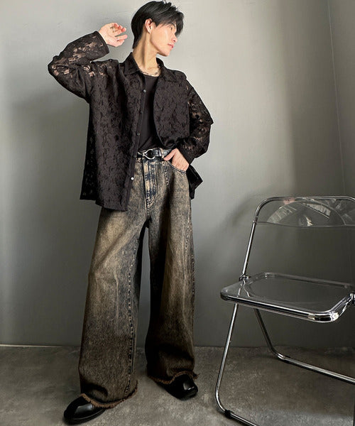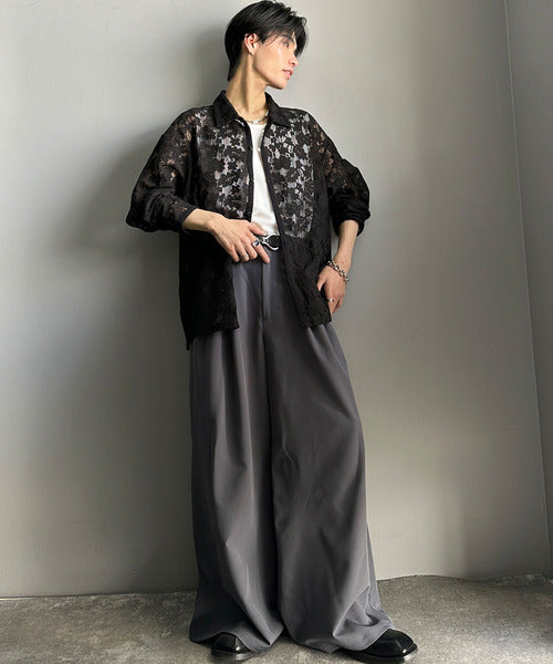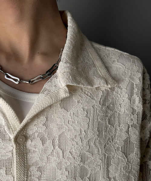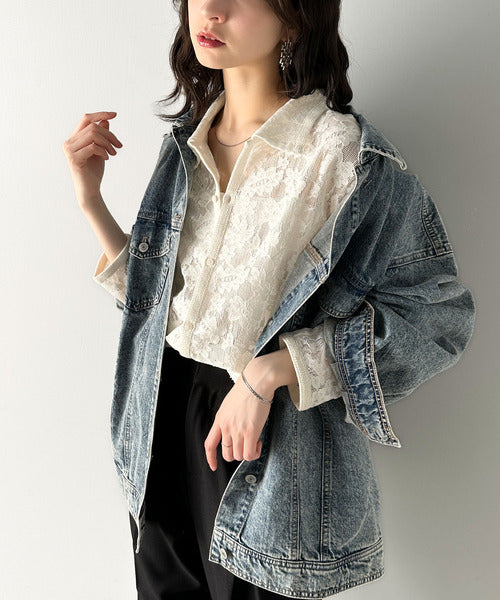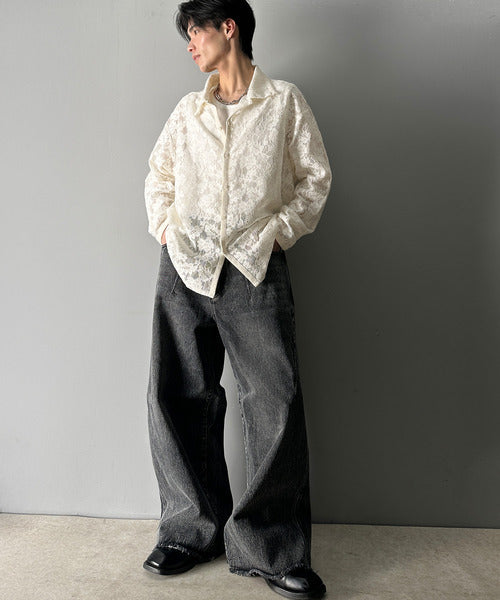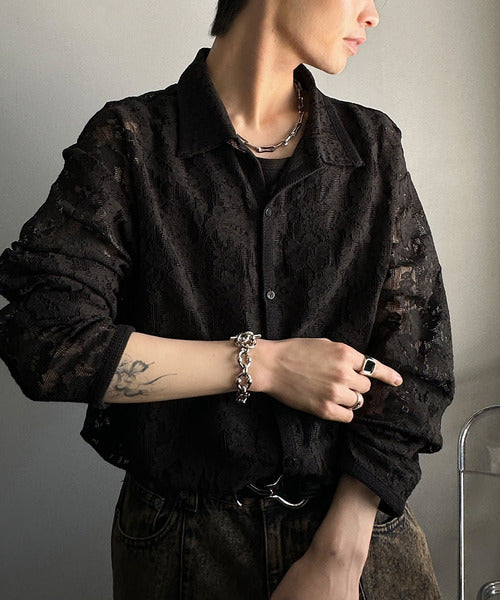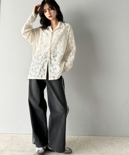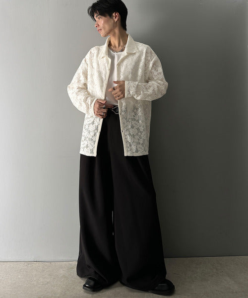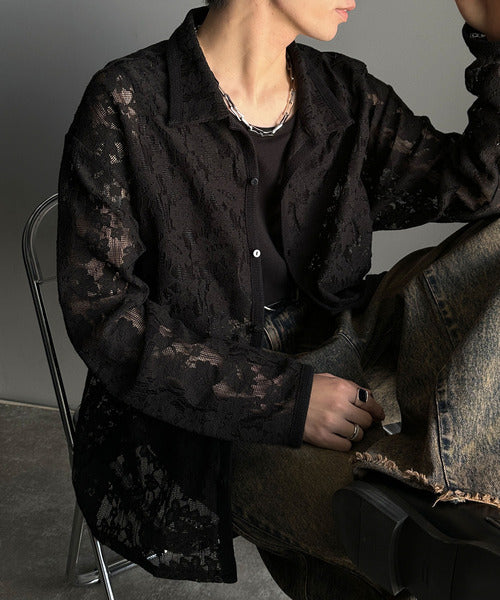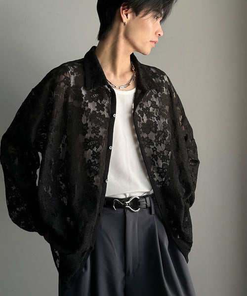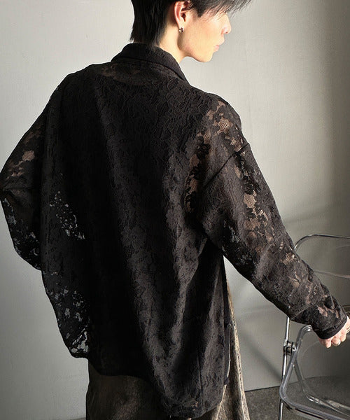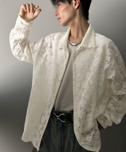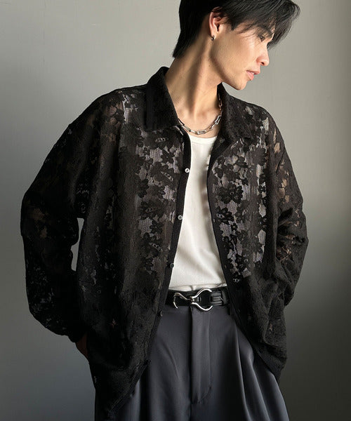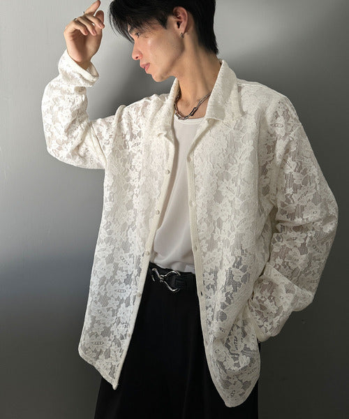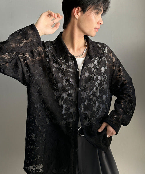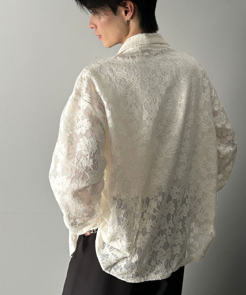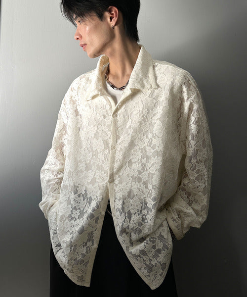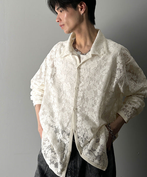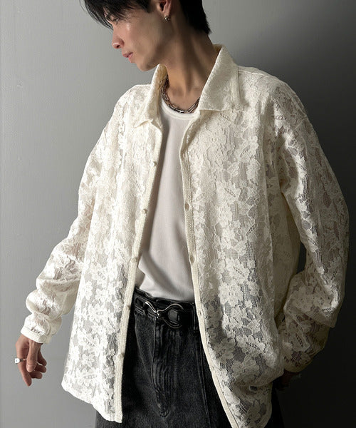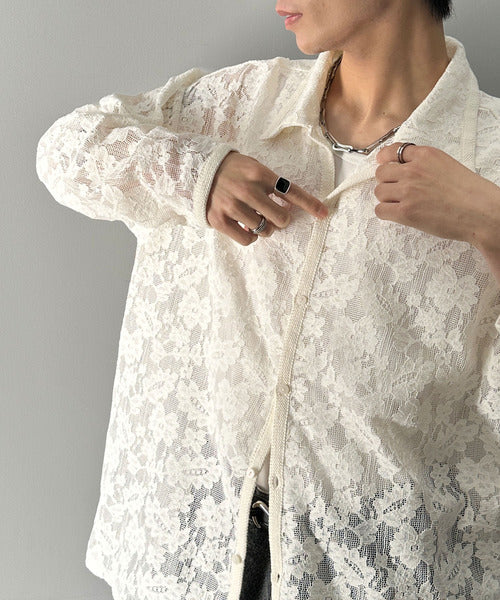 大人上品なオーバーシャツは、繊細な花柄を表現したフィレレース生地を