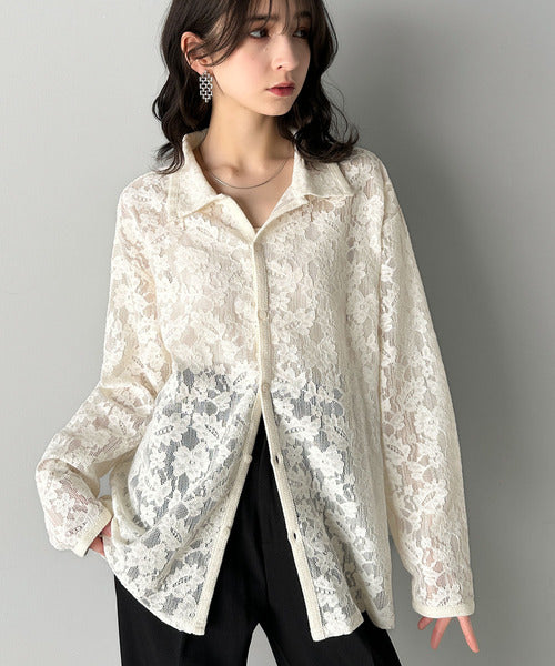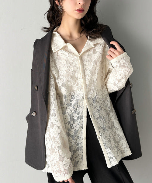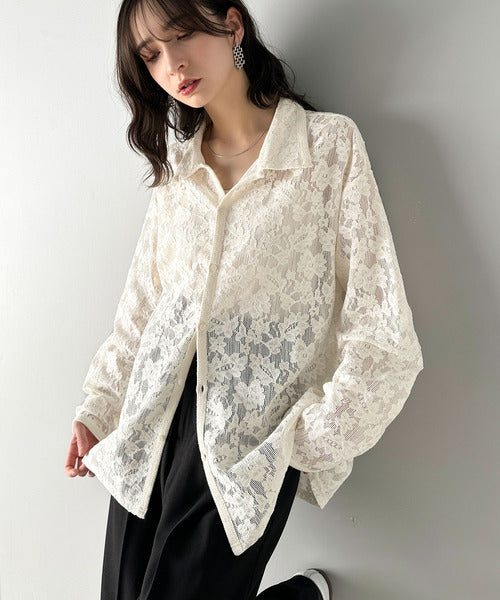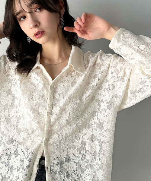 大人上品さが魅力◎ルーズシルエット 花柄レースオーバーシャツ(長袖) cm1240070