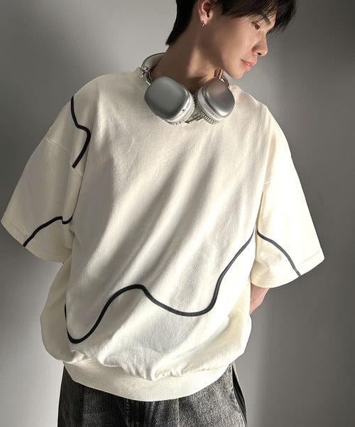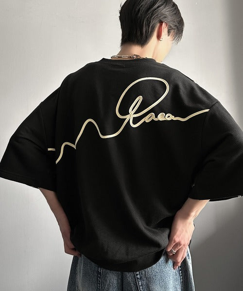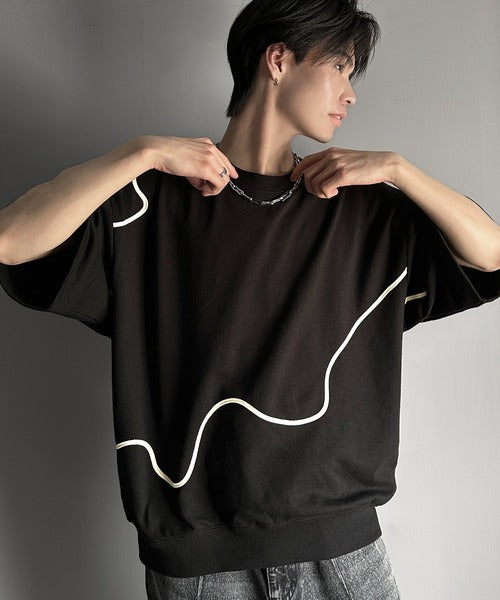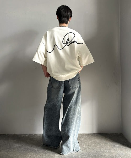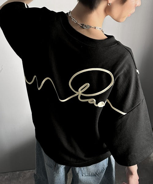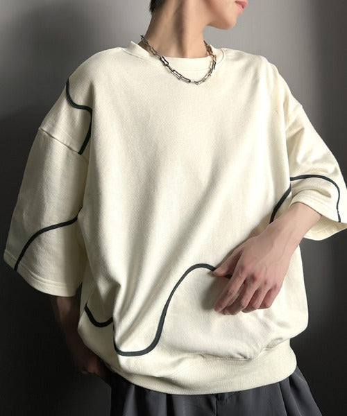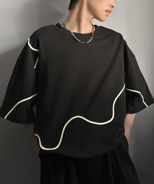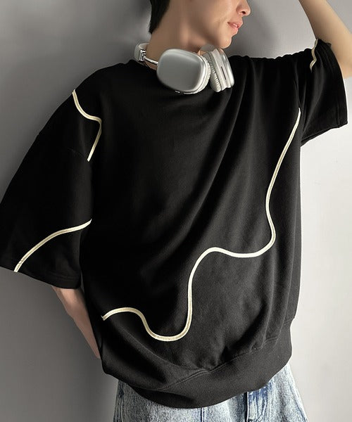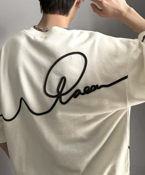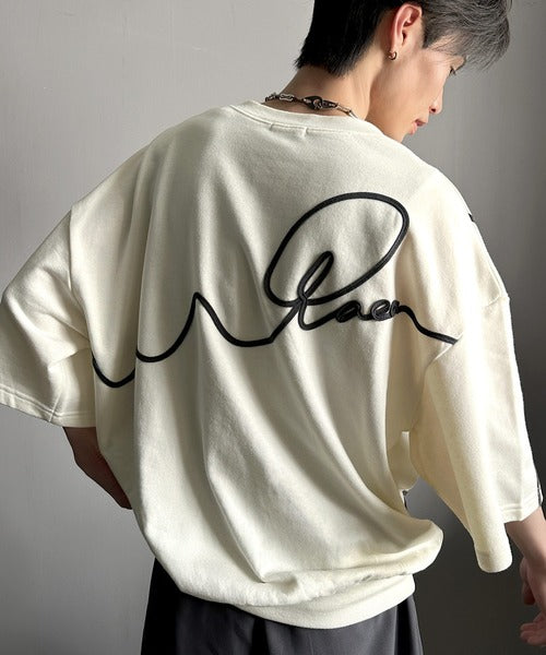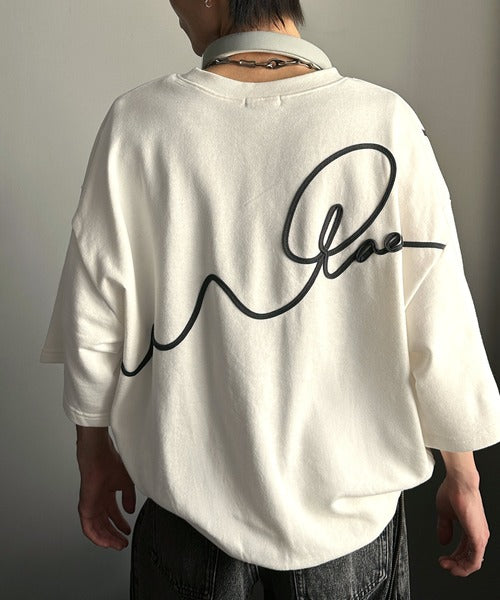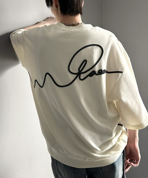 《メンズもレディースも着れちゃう"コード刺繍ハーフスリーブ裏毛Tシャツ"》
