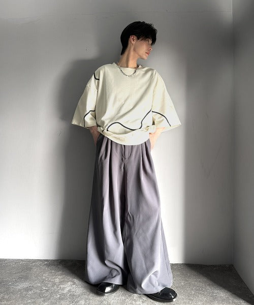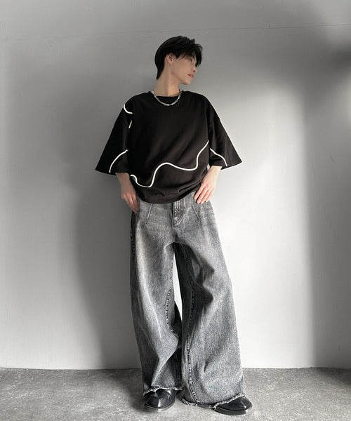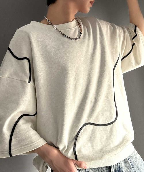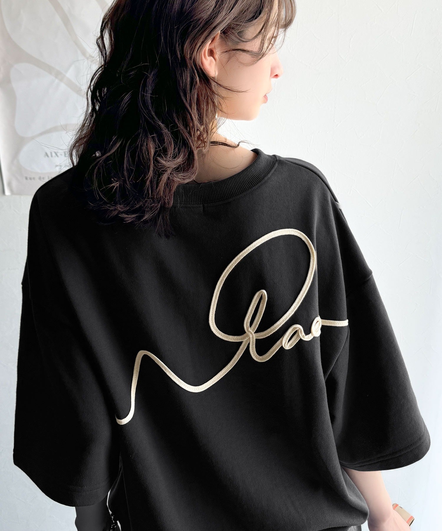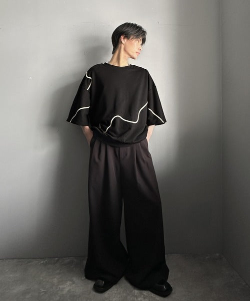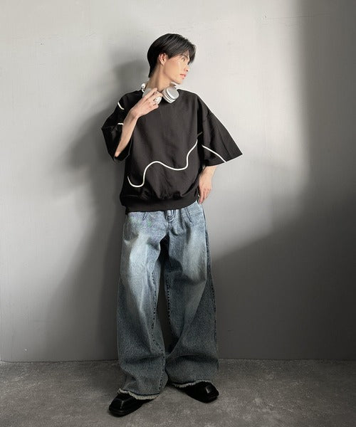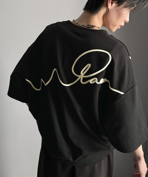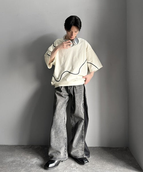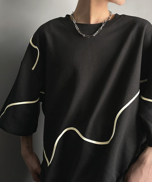 《メンズもレディースも着れちゃう"コード刺繍ハーフスリーブ裏毛Tシャツ"》