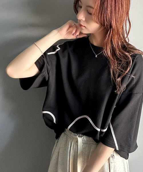 このウェーブコード刺繍ハーフスリーブトップスは、