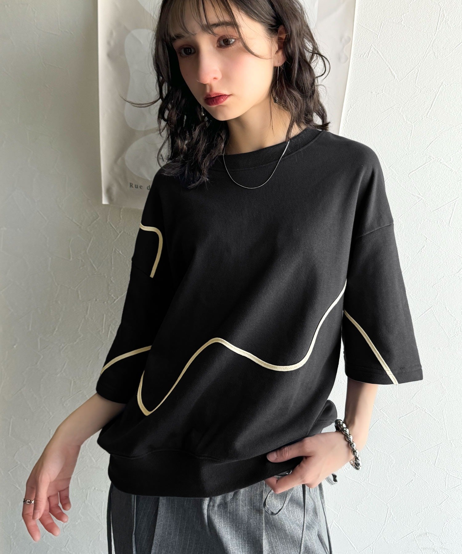 春夏の新定番!ウェーブコード刺繍ハーフスリーブpaeanトップス cm1260418