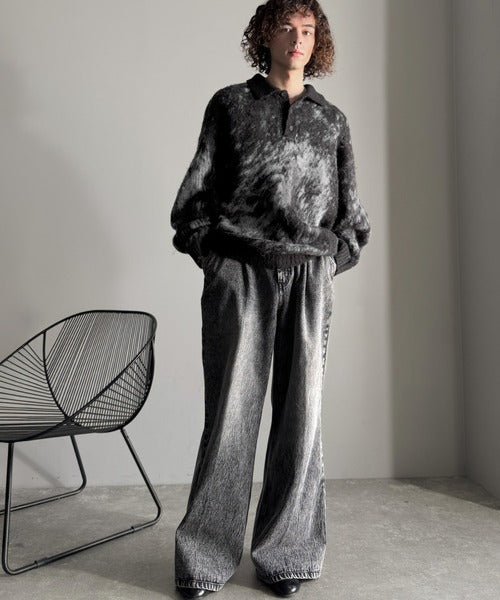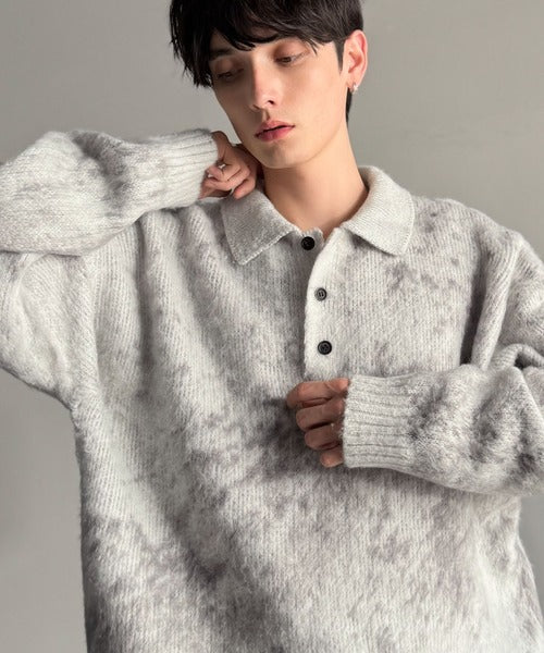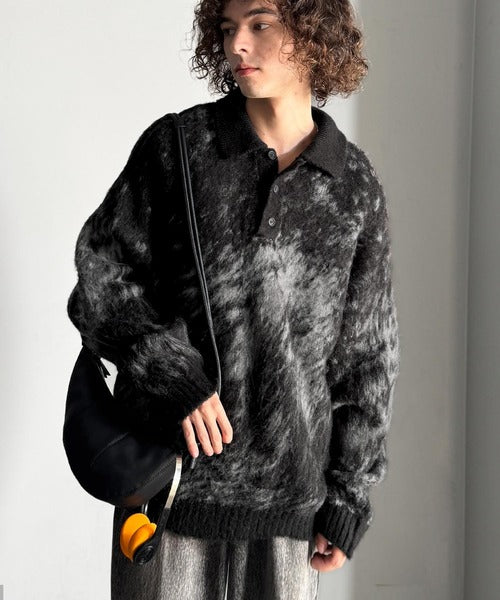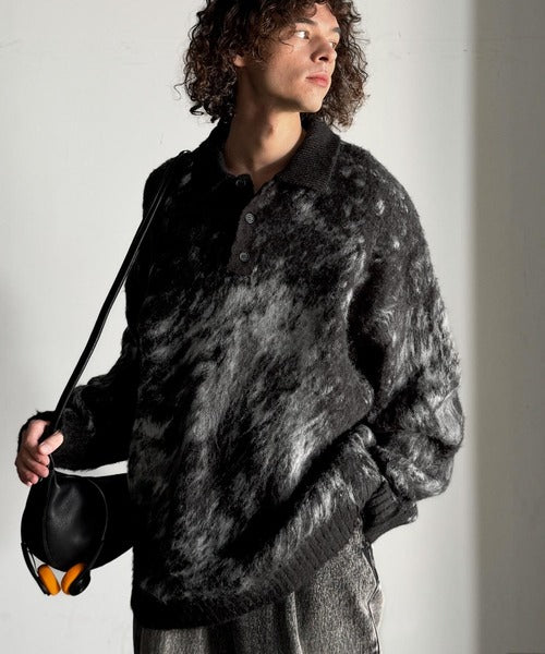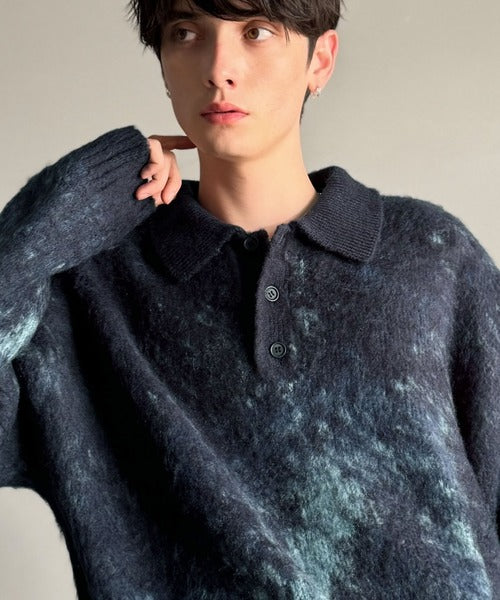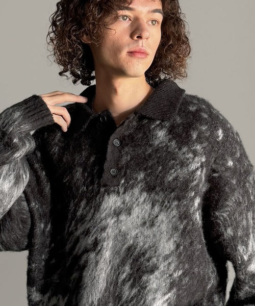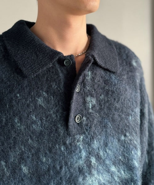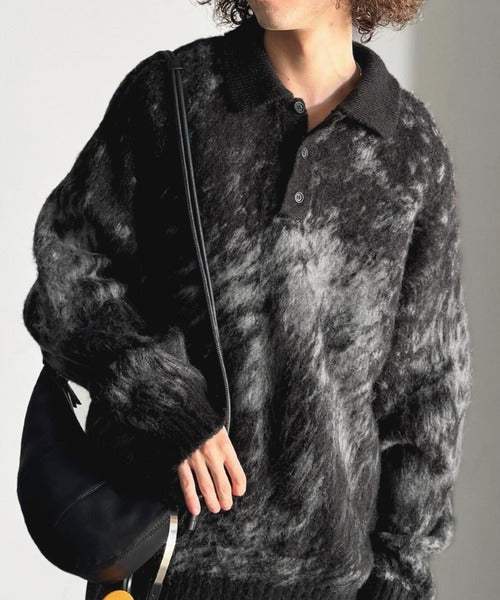 「モヘアライクシャギー素材ニットポロシャツ/Mohair-Like Shaggy Knit Polo Shirt」
