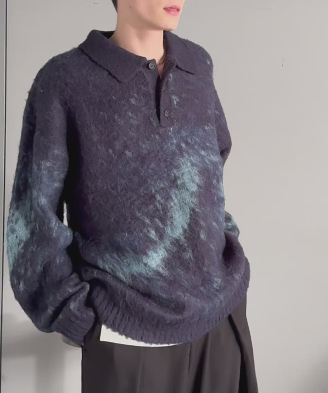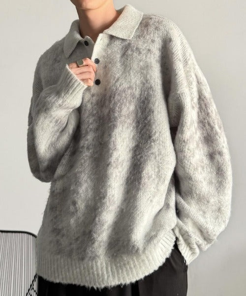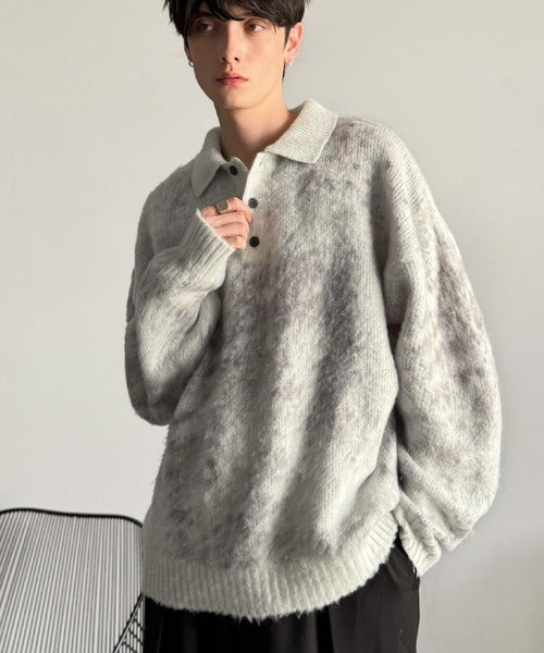 Mohair-Like Shaggy Knit Polo Shirt」