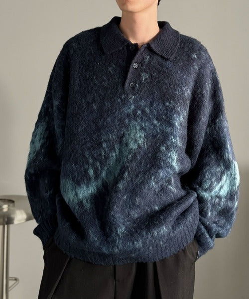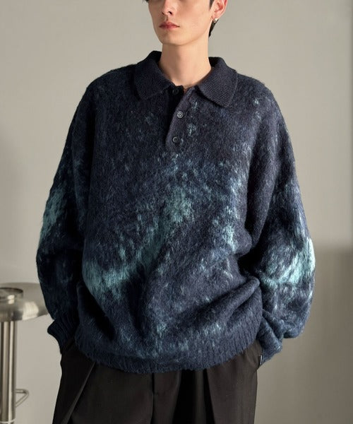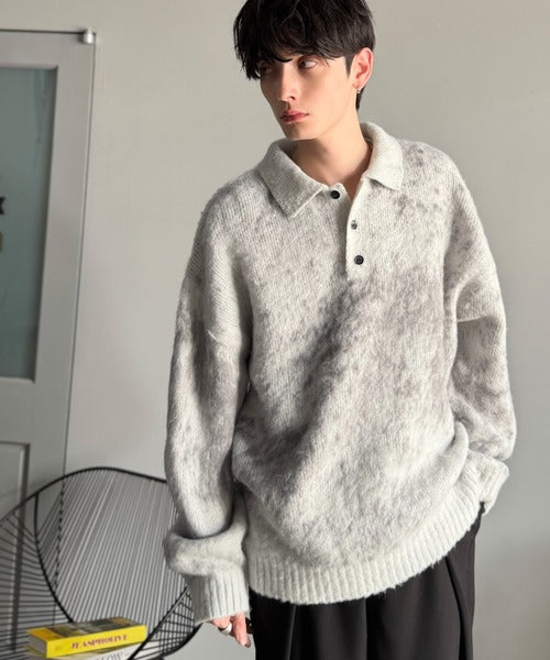 【Classical Origin】「まるで毛布。」モヘアライクシャギー素材ニットポロシャツ/Mohair-Like Shaggy Knit Polo Shirt co0780004