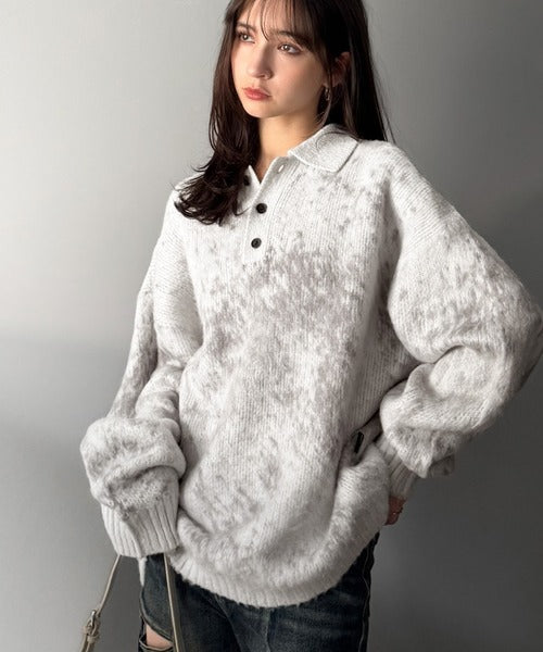 「モヘアライクシャギー素材ニットポロシャツ/