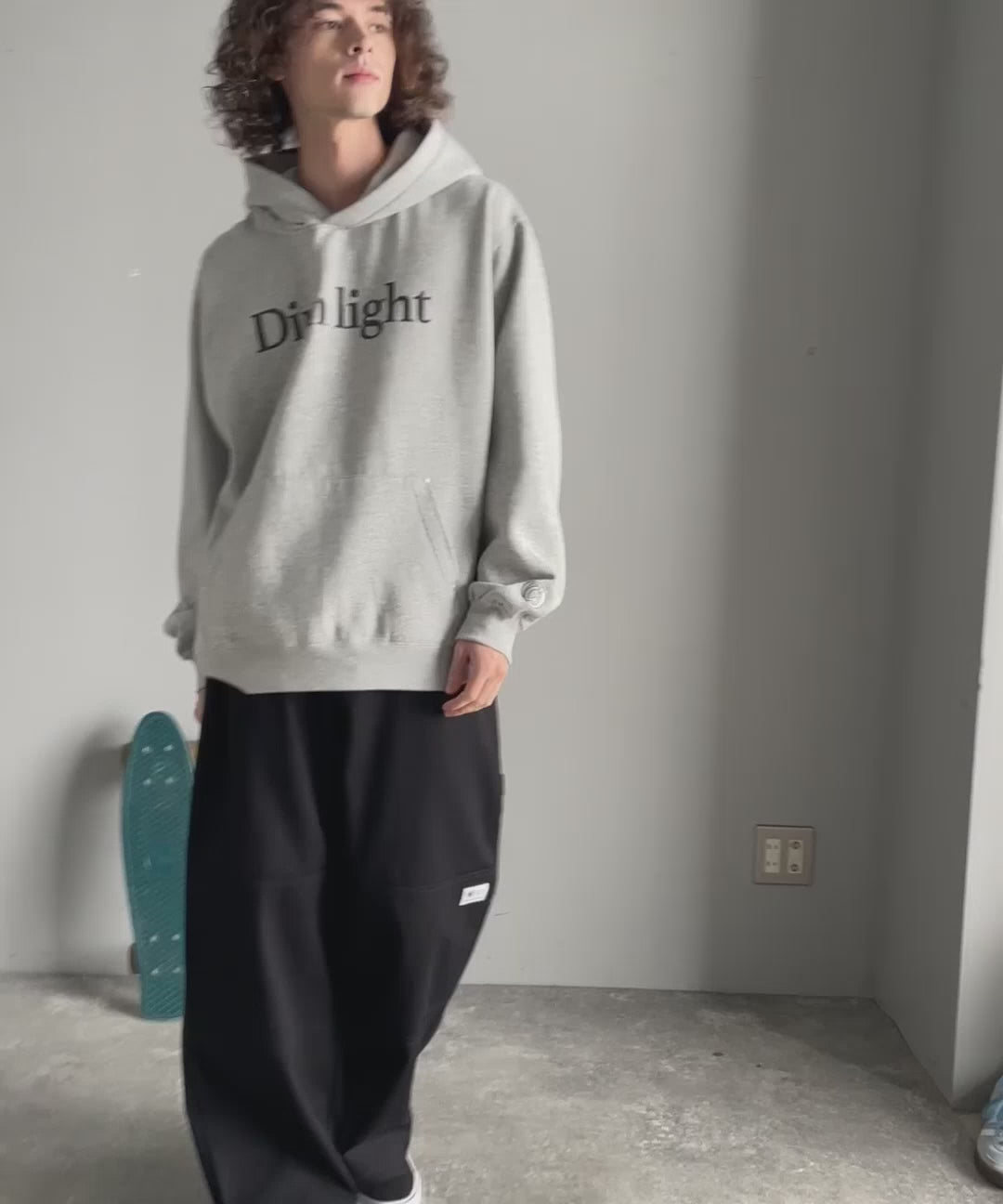 肌寒い季節には、スウェットのジップパーカーやニットを合わせて、リラックス感のカジュアルコーデに。