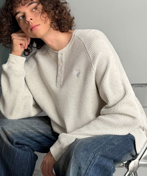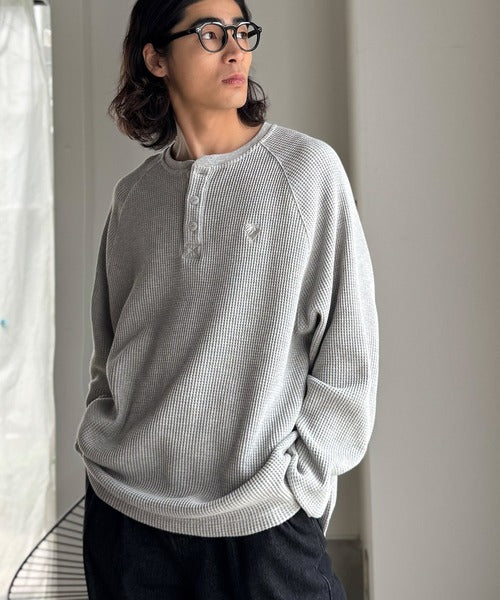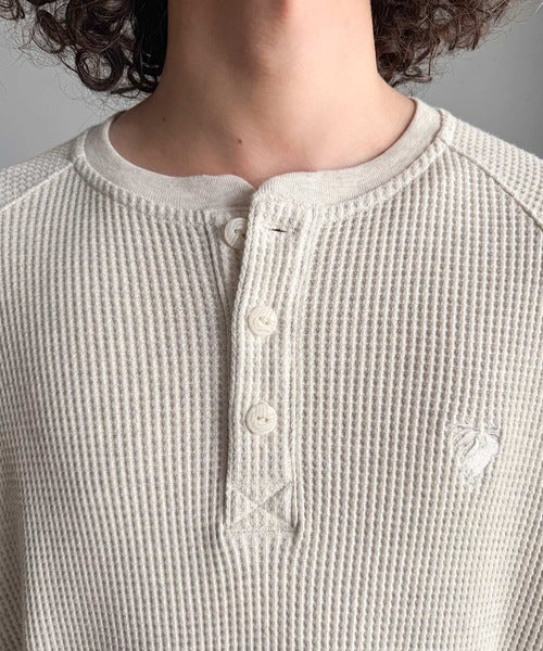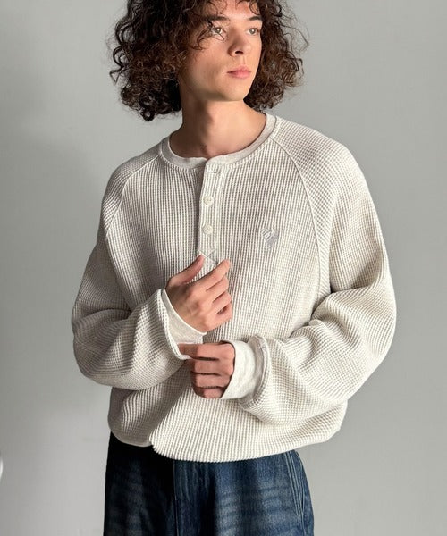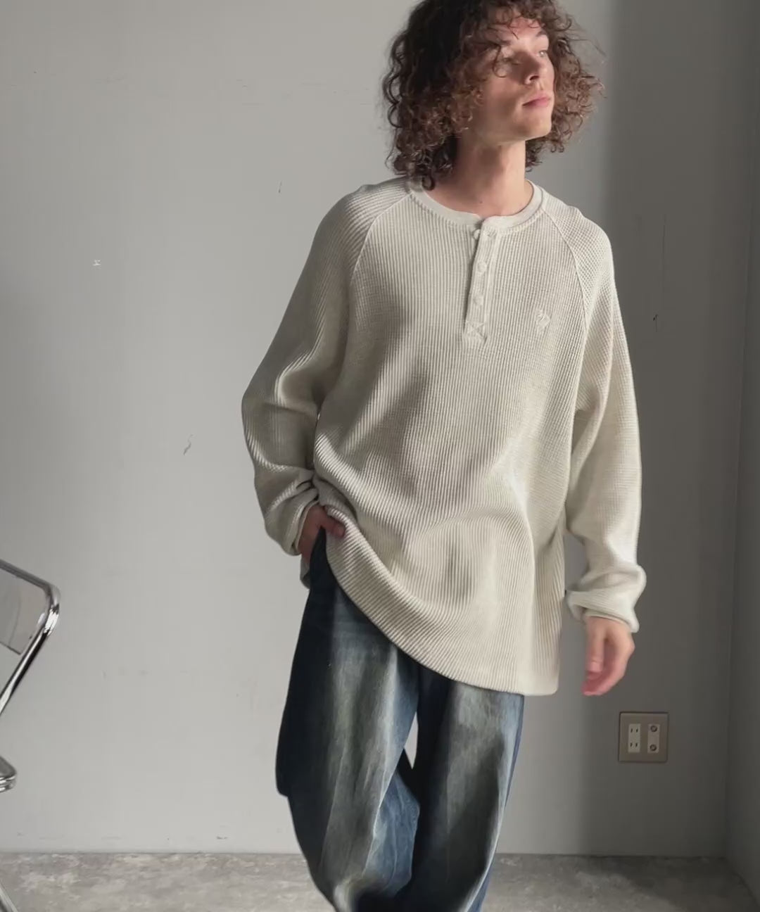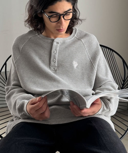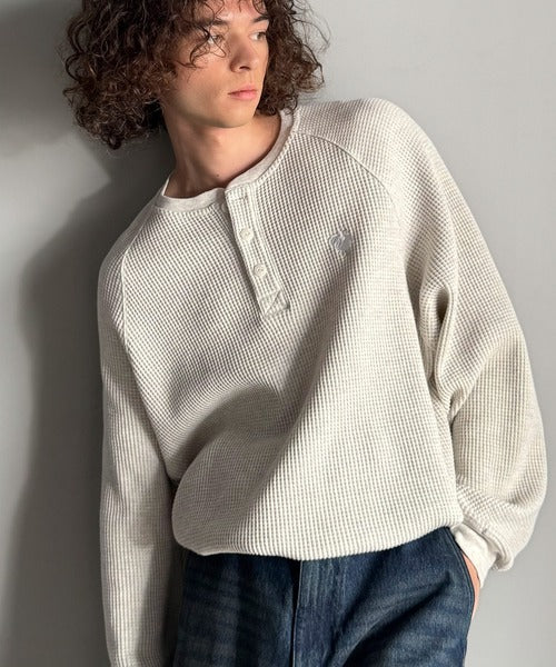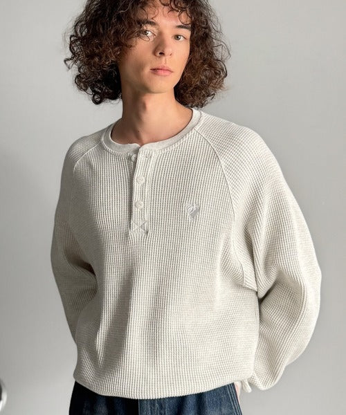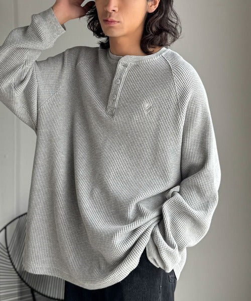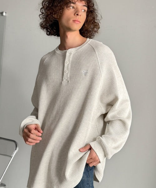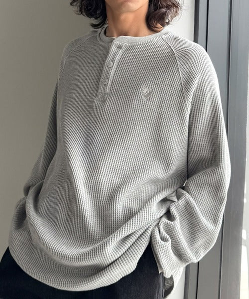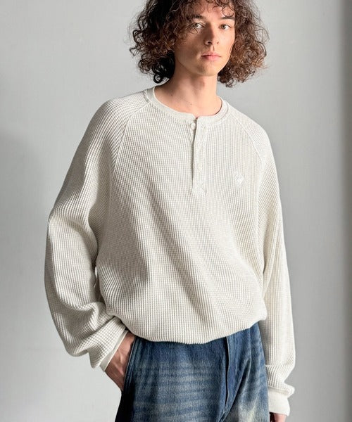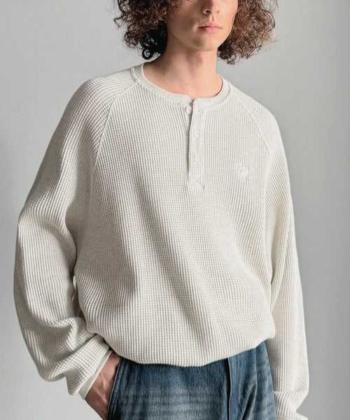 綿100%ワッフル生地を採用したオーバーサイズのヘンリーネックT。
