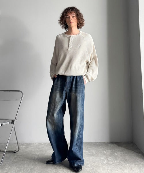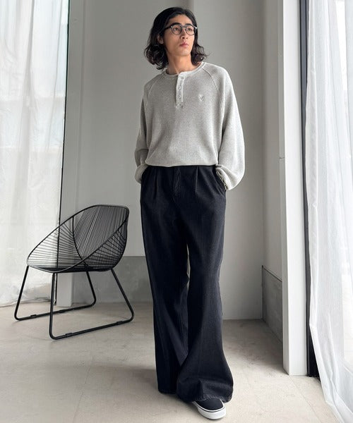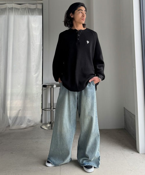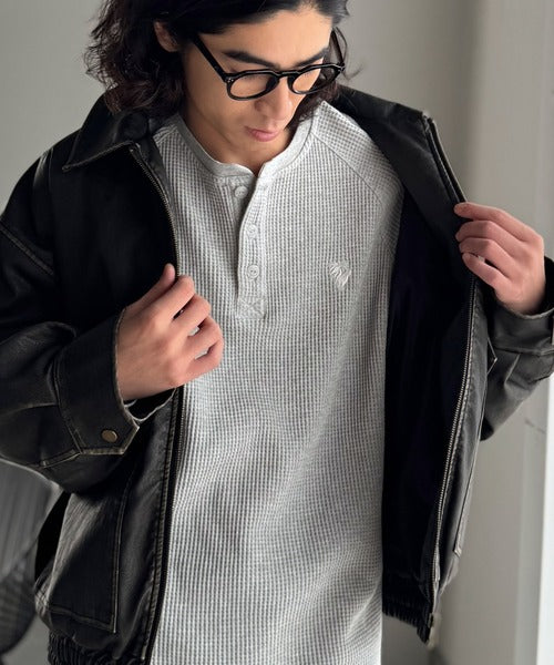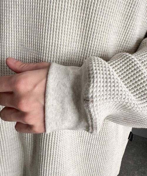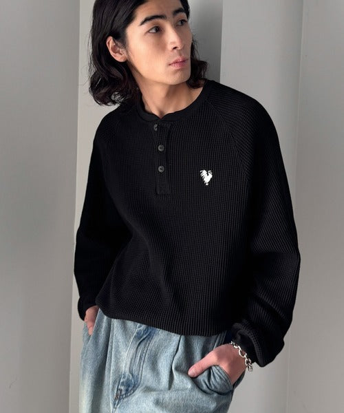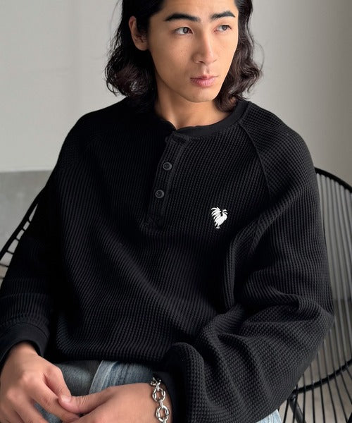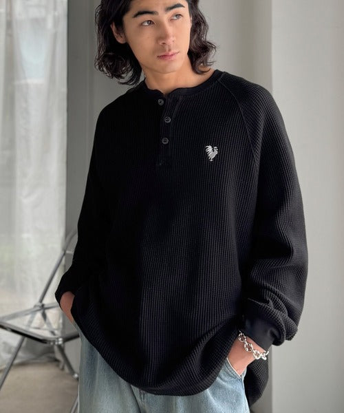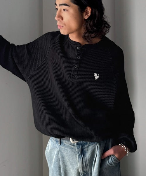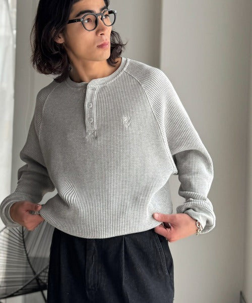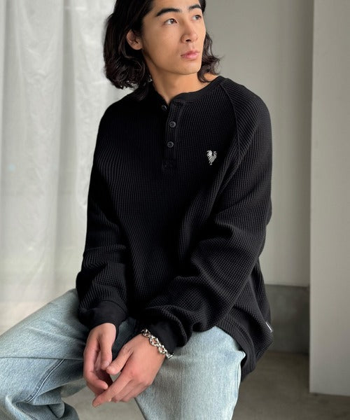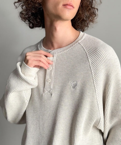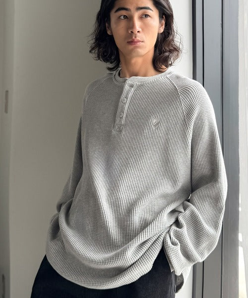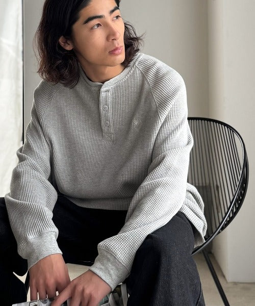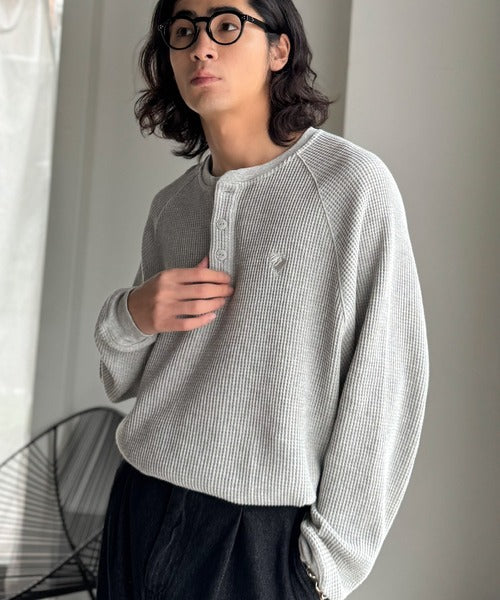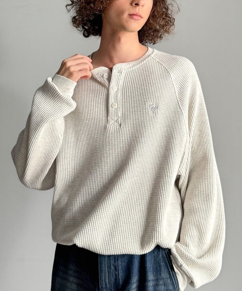 綿100%ワッフル生地を採用したオーバーサイズのヘンリーネックT。