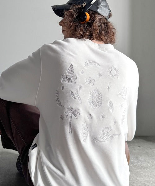 背面の存在感ある刺繍がシンプルなデザインにアクセント。