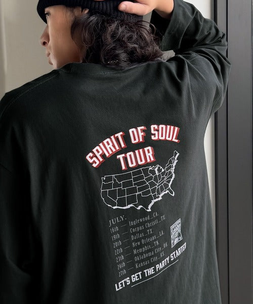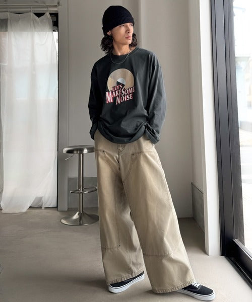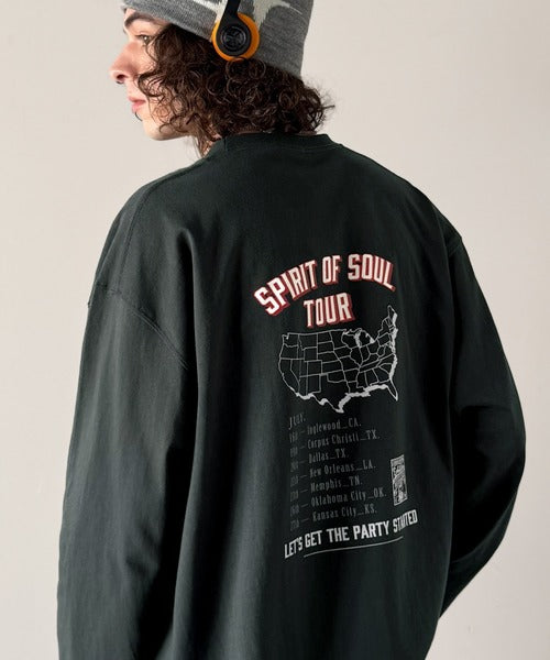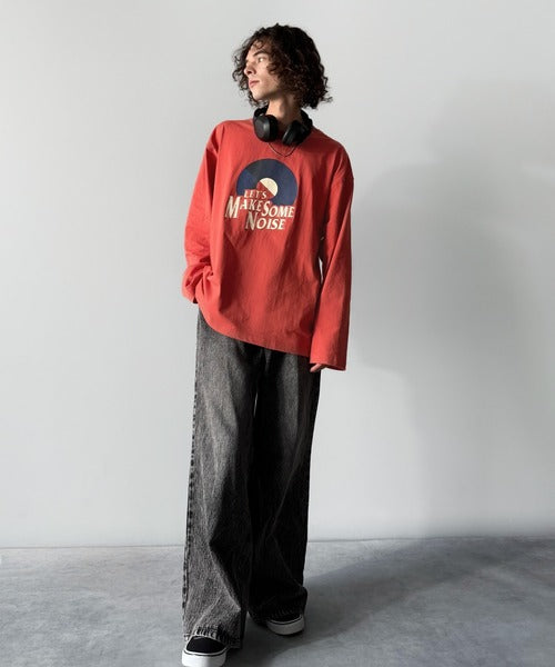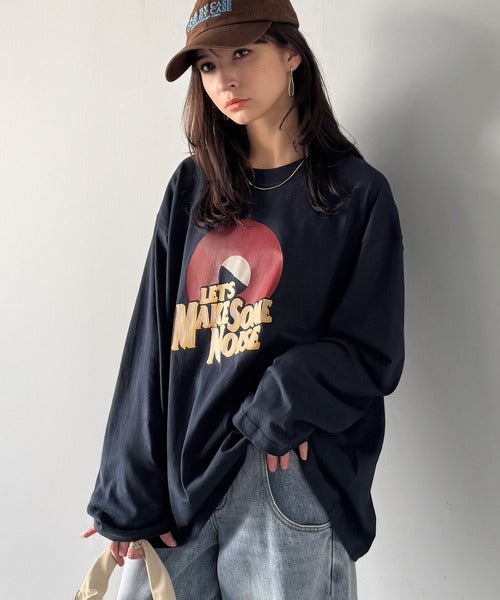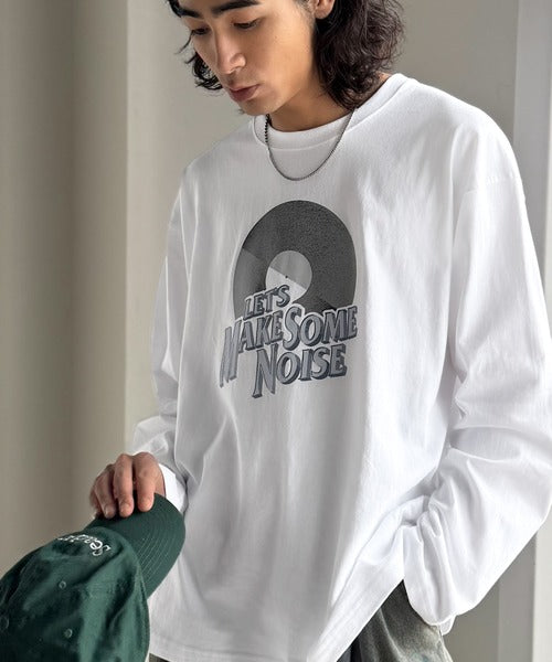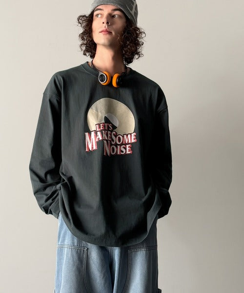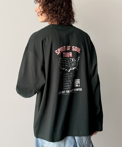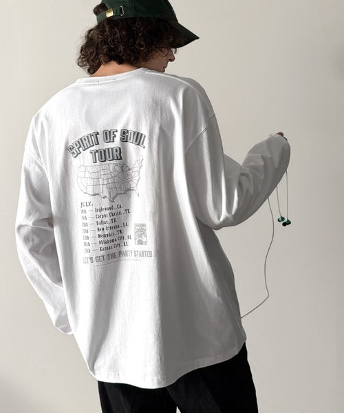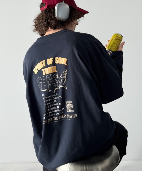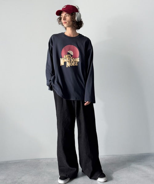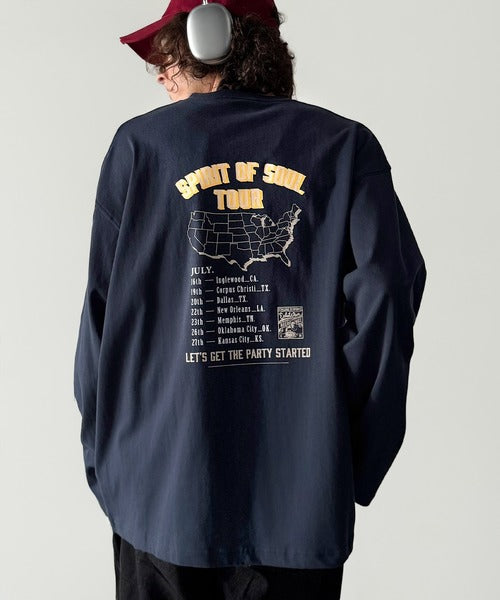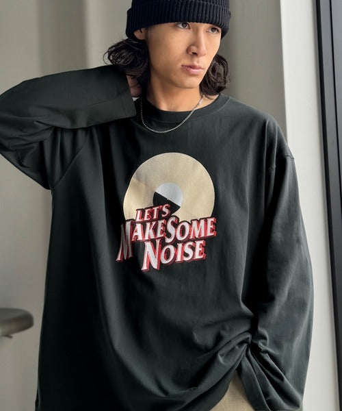 《JaVaジャバコラボ》「前後抜かりなし。」綿100%レコード盤レトロツアーロゴTシャツ(長袖) jo1150065