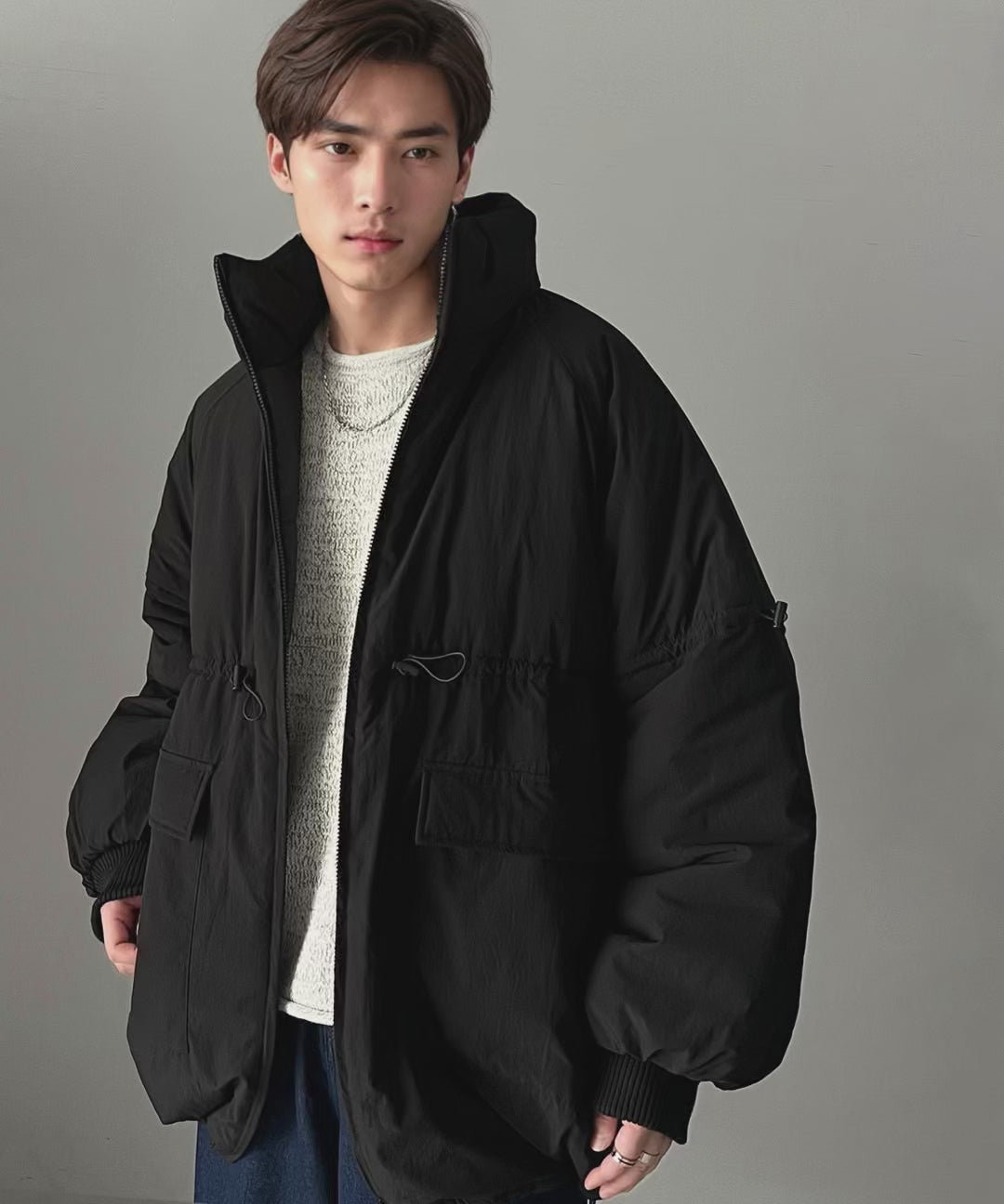 【素材】 表地:ポリエステル100% 裏地:ポリエステル 100% 中わた:ポリエステル100% リブ部分:ポリエステル99%、ポリウレタン1%