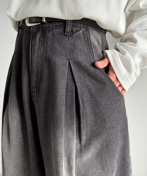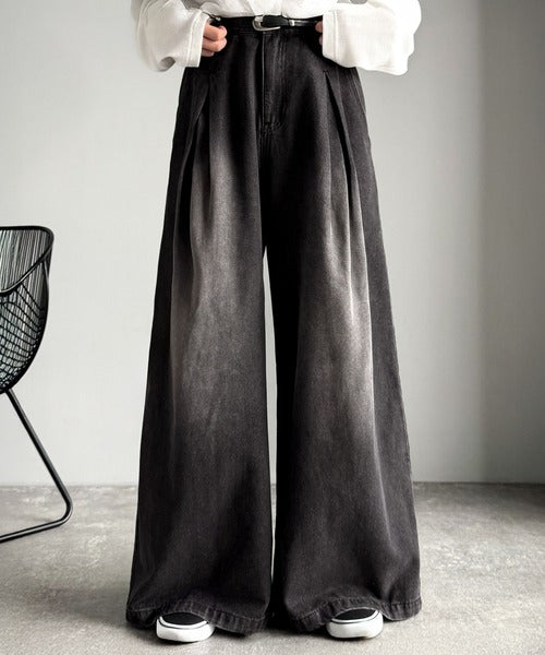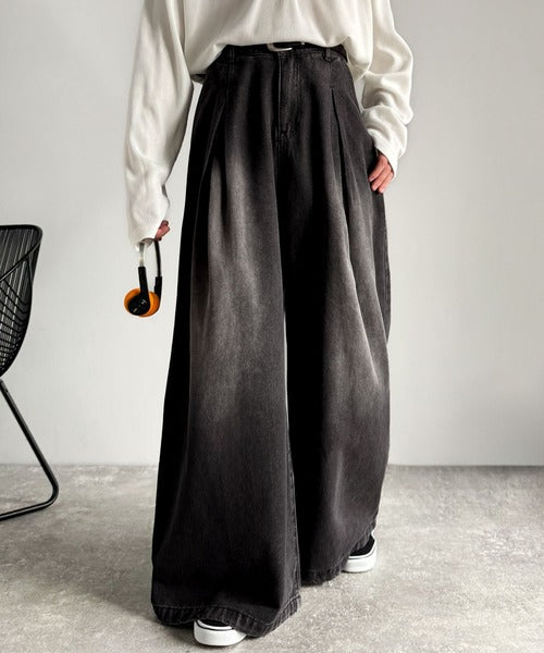 「Unique Three-Tuck Super Wide Denim/変形3タックスーパーワイドデニム」