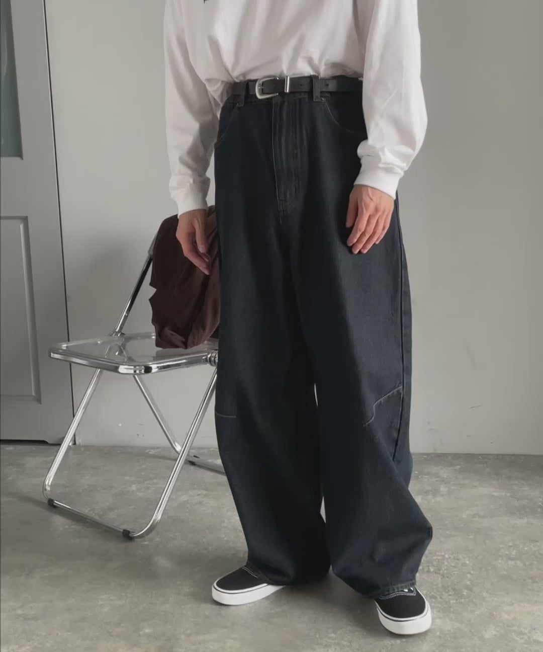 ボリューム感のあるバレルレッグに、膝位置の切り替えラインで立体的なフォルムを表現。