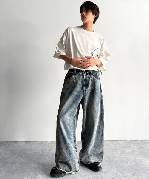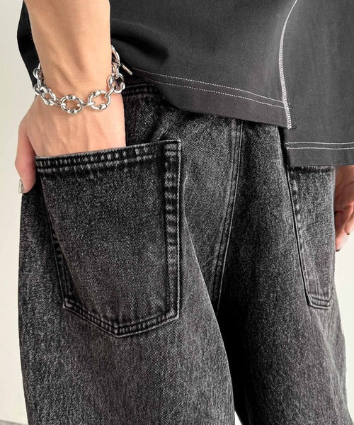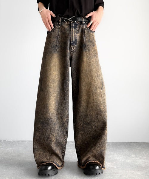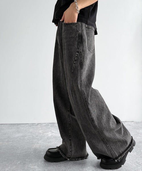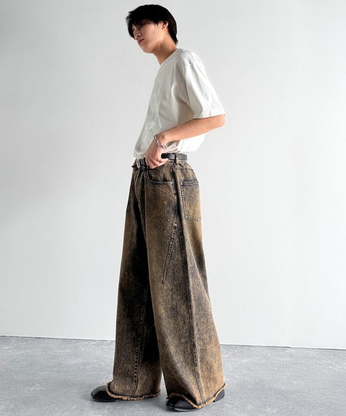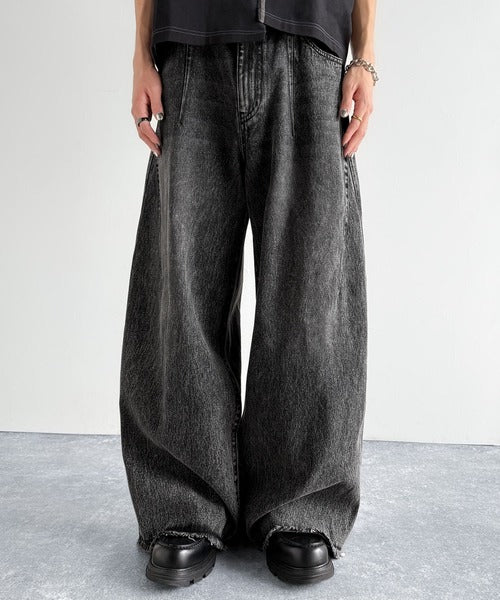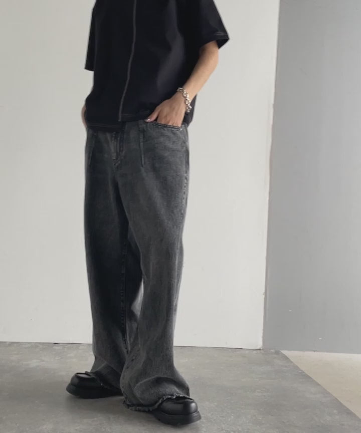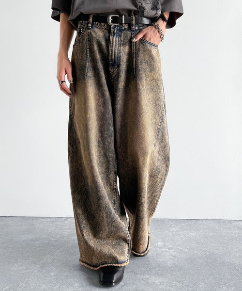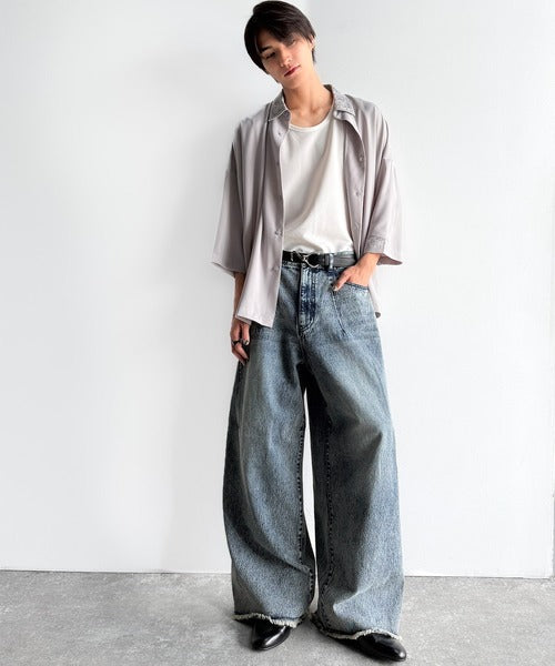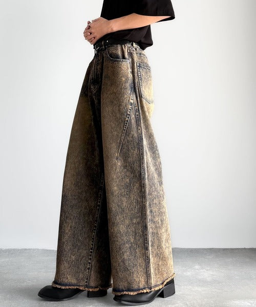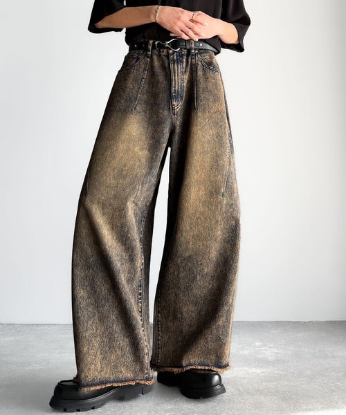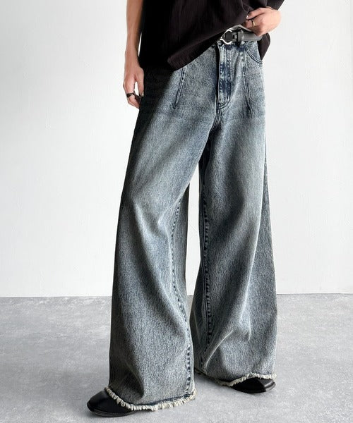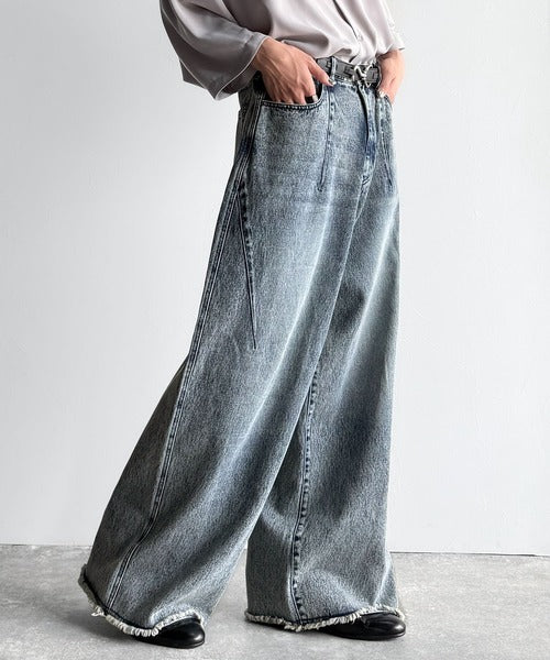 「ずるっとこなれ感。」ヴィンテージ加工ワイド3Dカーブデニムパンツ/Vintage Washed 3D Curve Wide-Leg Denim co1150003