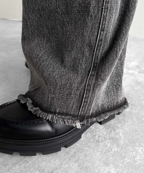 ・ヴィンテージ洗い加工&裾フリンジ仕立て