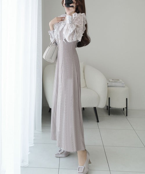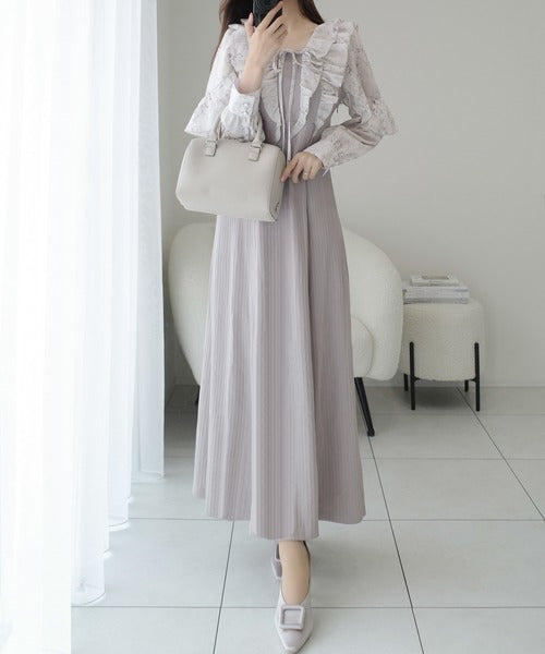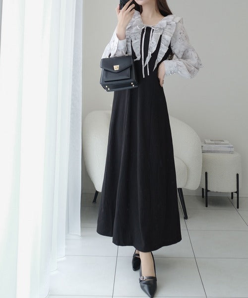 可愛さと大人っぽさの両方の印象がある贅沢なロングワンピースです。