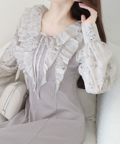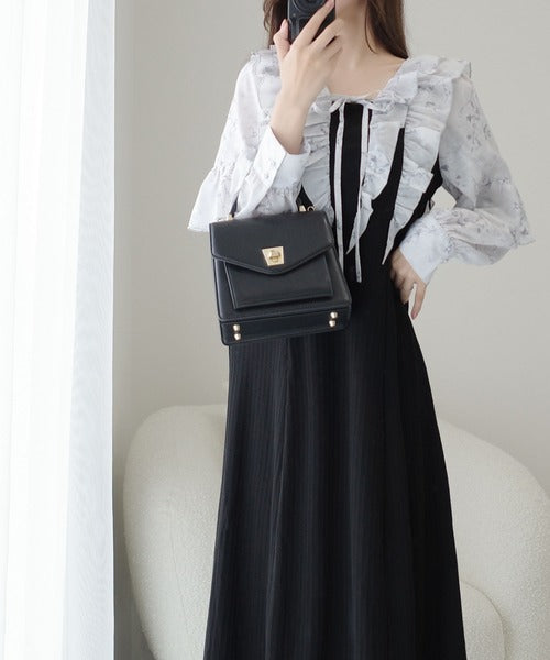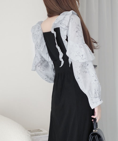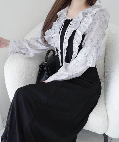 【mily bilet】上品にスタイルアップ。シャイニー花柄フリルブラウスドッキングワンピース mi1139093