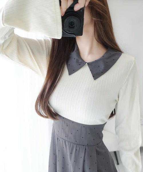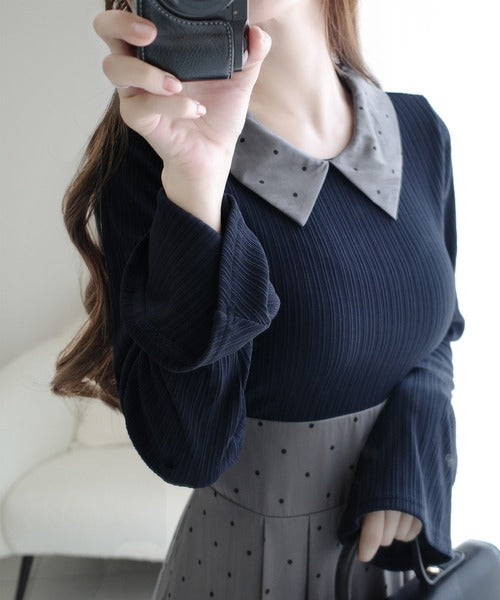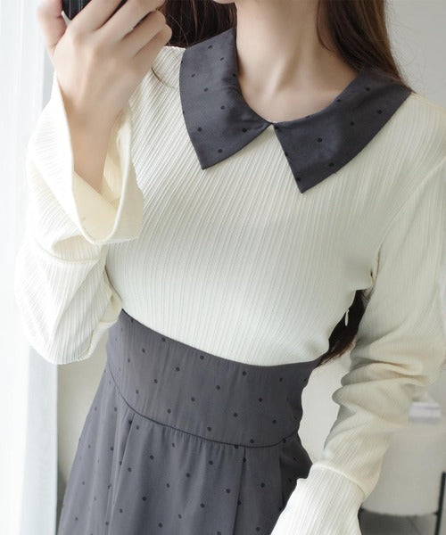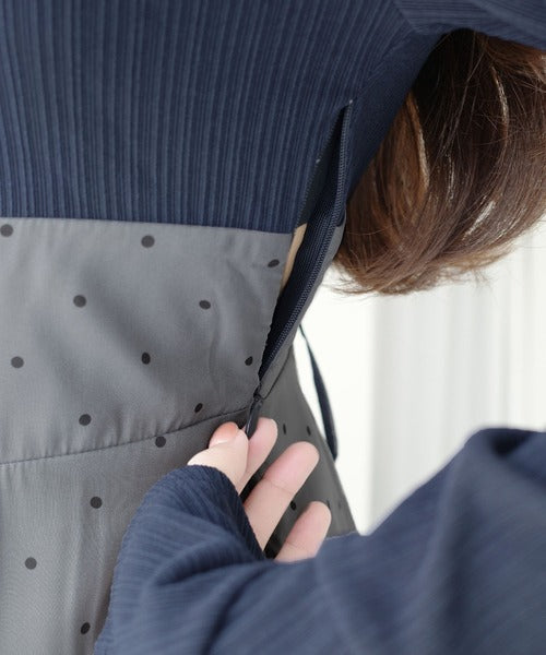 小さなドット柄がトレンド感を演出し、裾の無地切り替えが清楚な印象を与えます♪