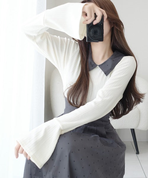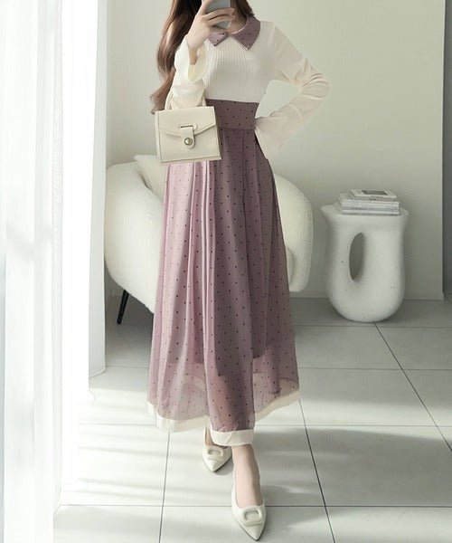 柔らかいリブと透け感のあるドット柄を合わせたワンピース。