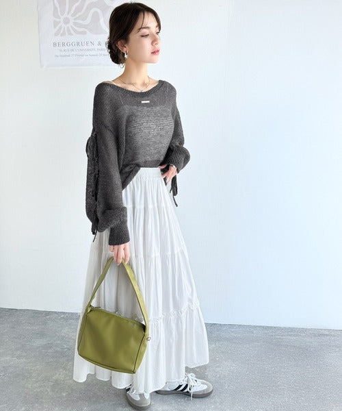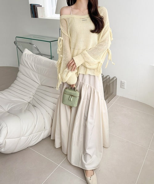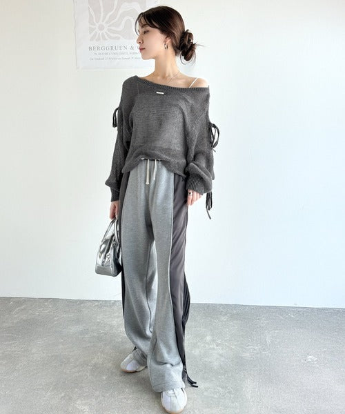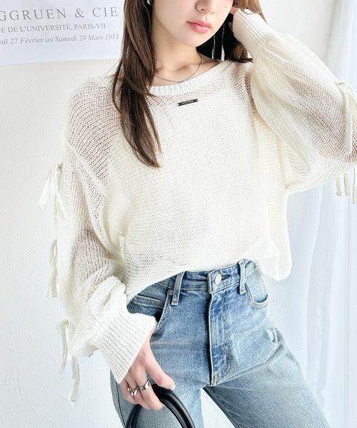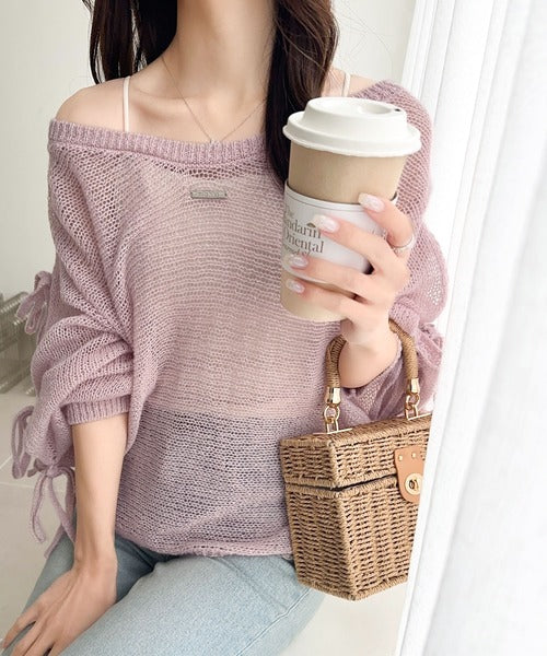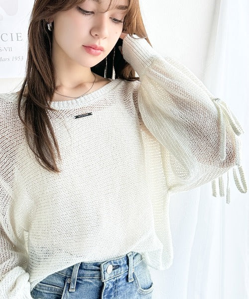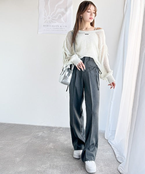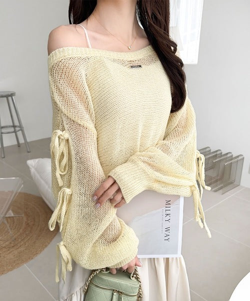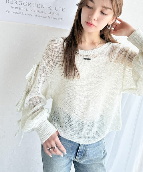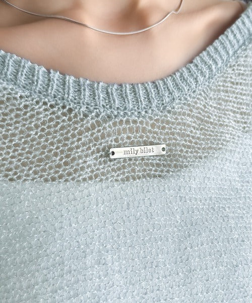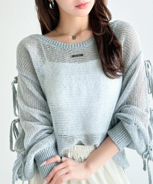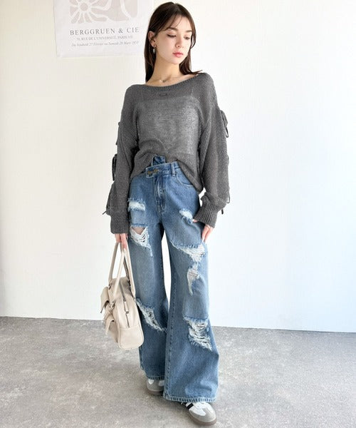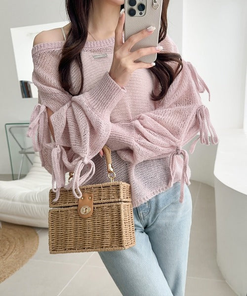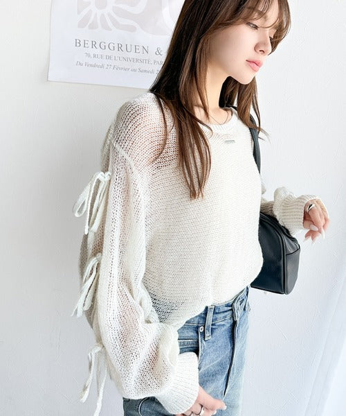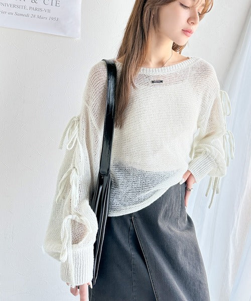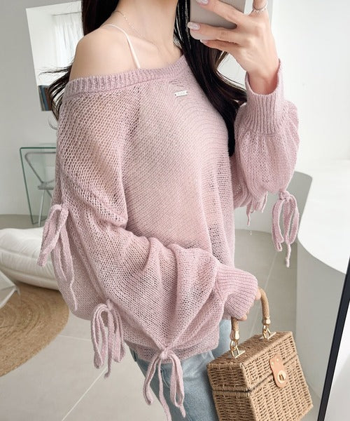 【mily bilet】大人のきらめき。プレートデザイン透かし編み袖リボンラメニット(ワンオフショル2way) mi1259009