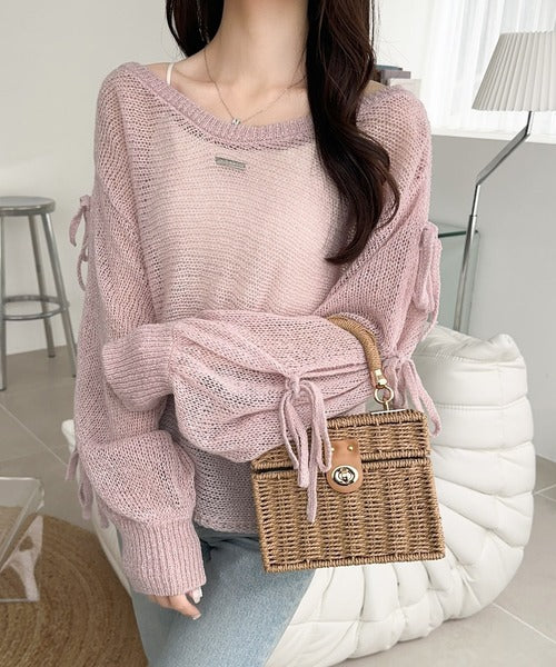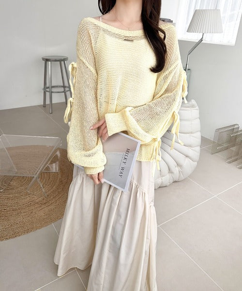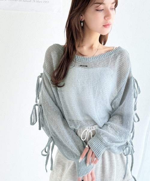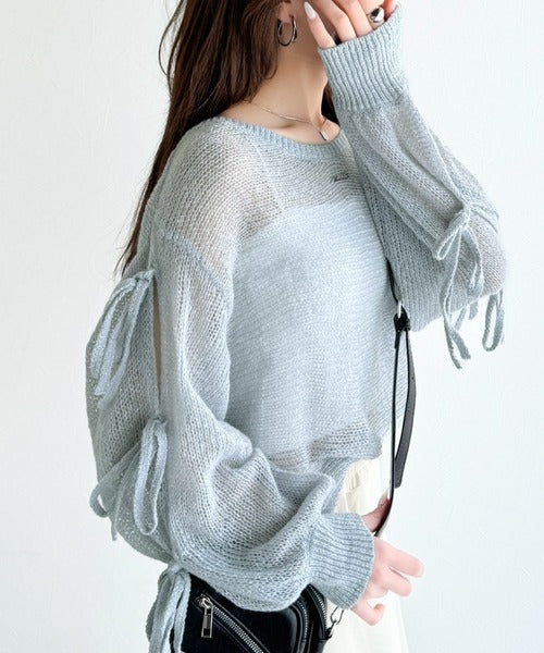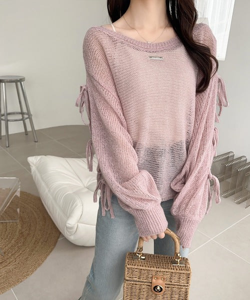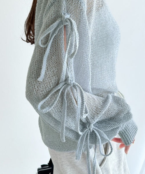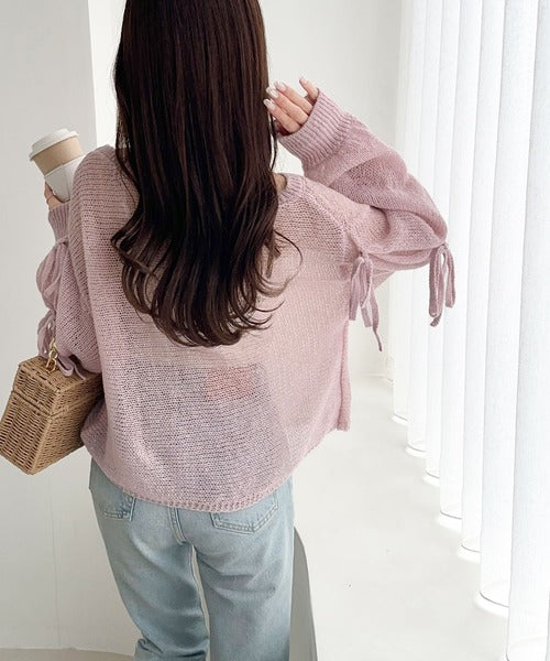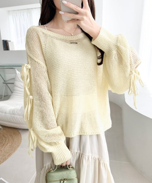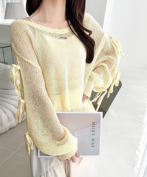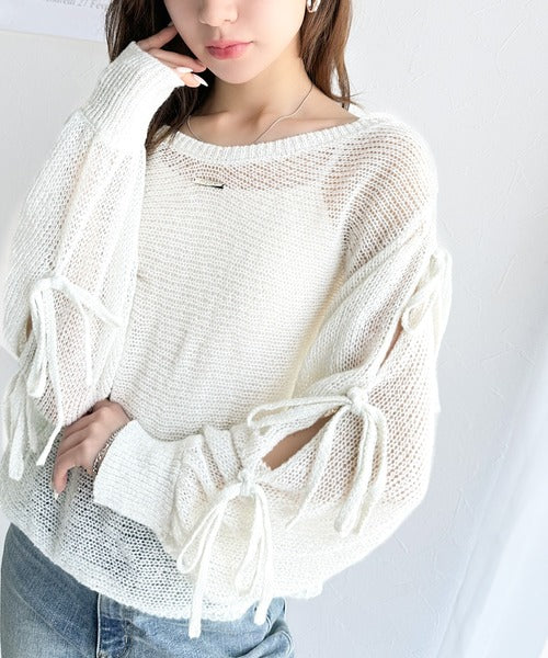 袖スリットにリボン付きのキュートなデザインで、柔らかな女性らしい雰囲気に!