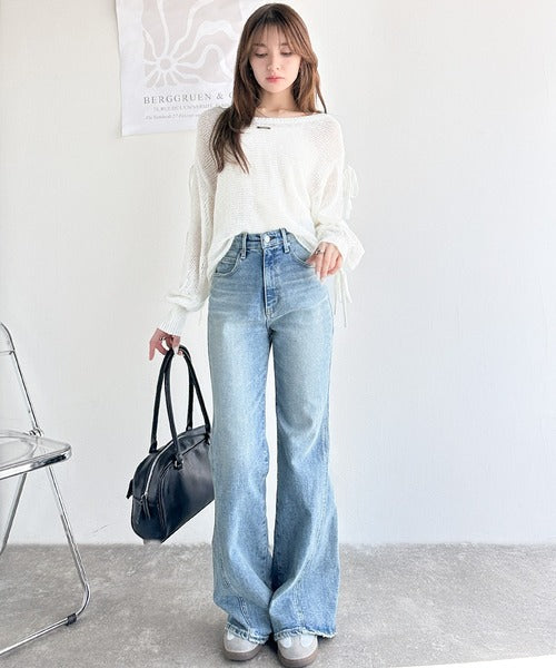 フレアパンツを合わせれば、リラックス感あふれるカジュアルスタイルが完成!